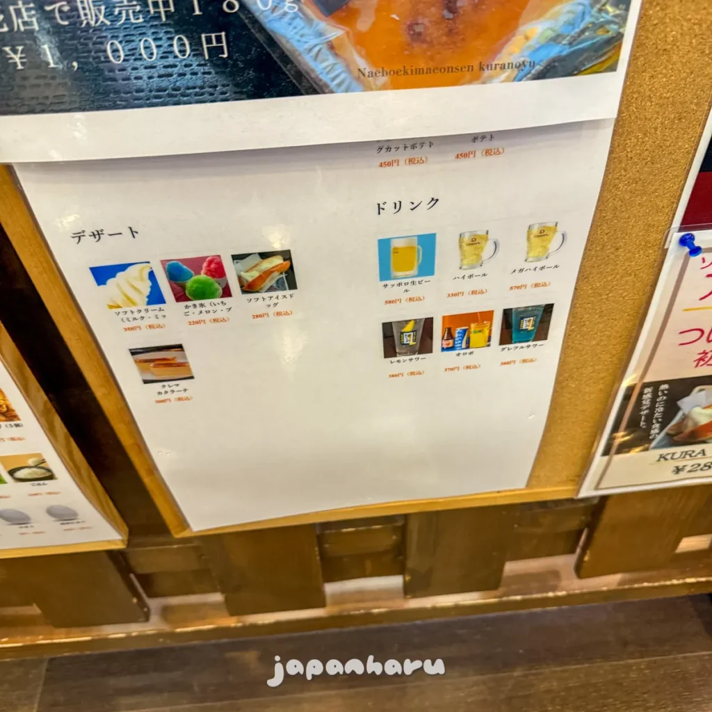쿠라노유의 메뉴는 공식사이트에서 확인할 수도 있어요.