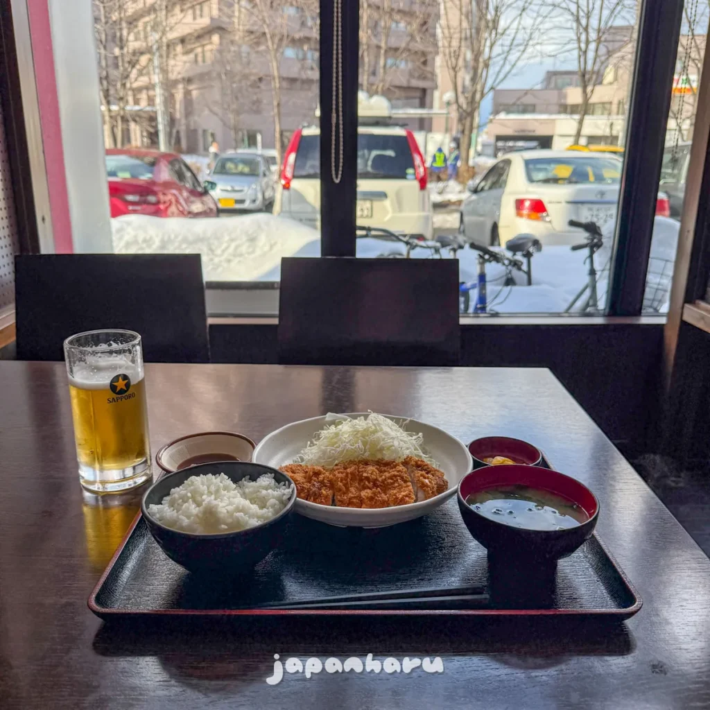 어쨌든, ‘쿠라돈카츠정식’과 ‘삿포로생맥주’로 선택했어요.