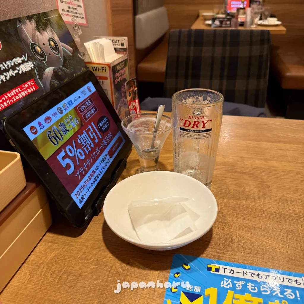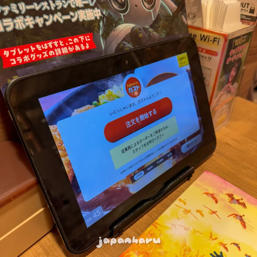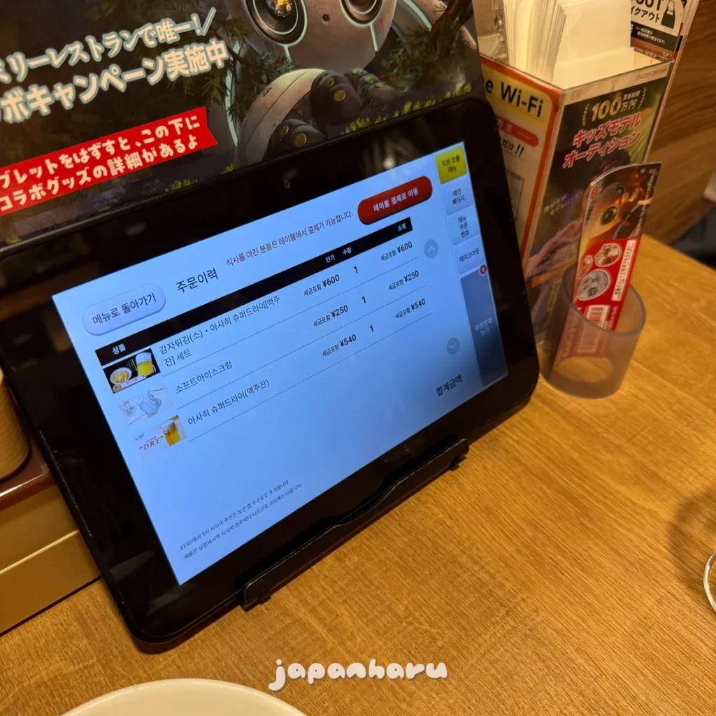 저번의 후쿠오카 가스토와 마찬가지로 태블릿으로 주문하는 방식이에요.