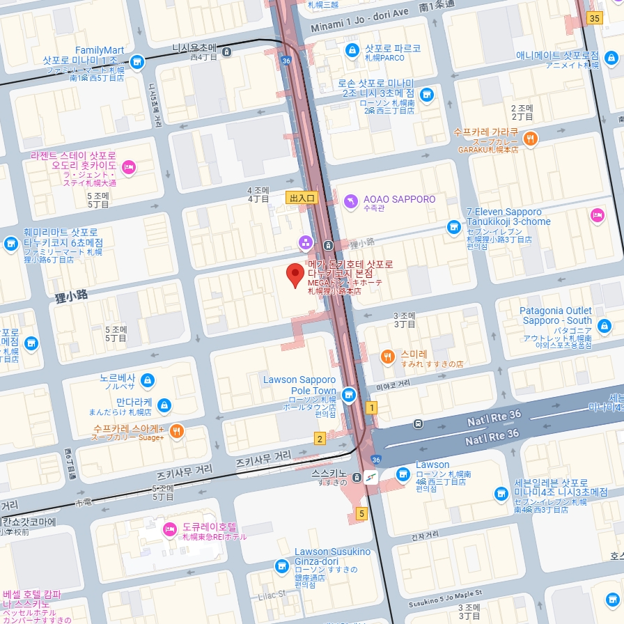 🚃 가는방법: 삿포로 시덴(노면전차) 다누키코지 정류장 근처 돈키호테 5층