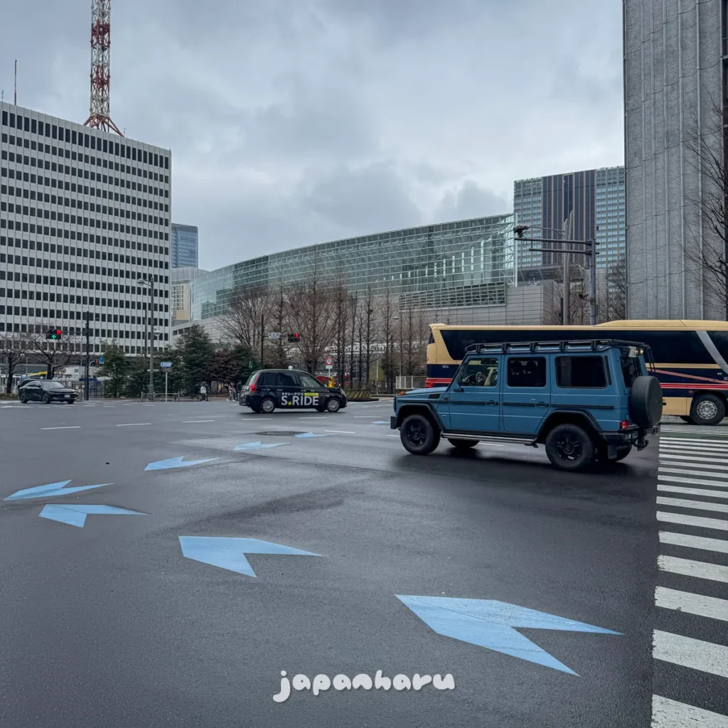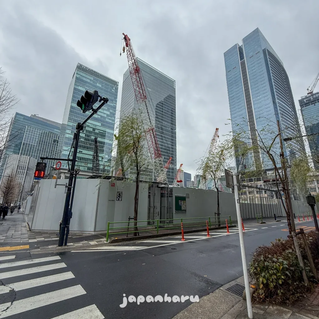 왼쪽을 살펴보면 빌딩 두 동이 가운데 대로를 사이로 보이는데, 왼쪽이 마루노우치 빌딩, 오른쪽이 신마루노우치 빌딩이에요.