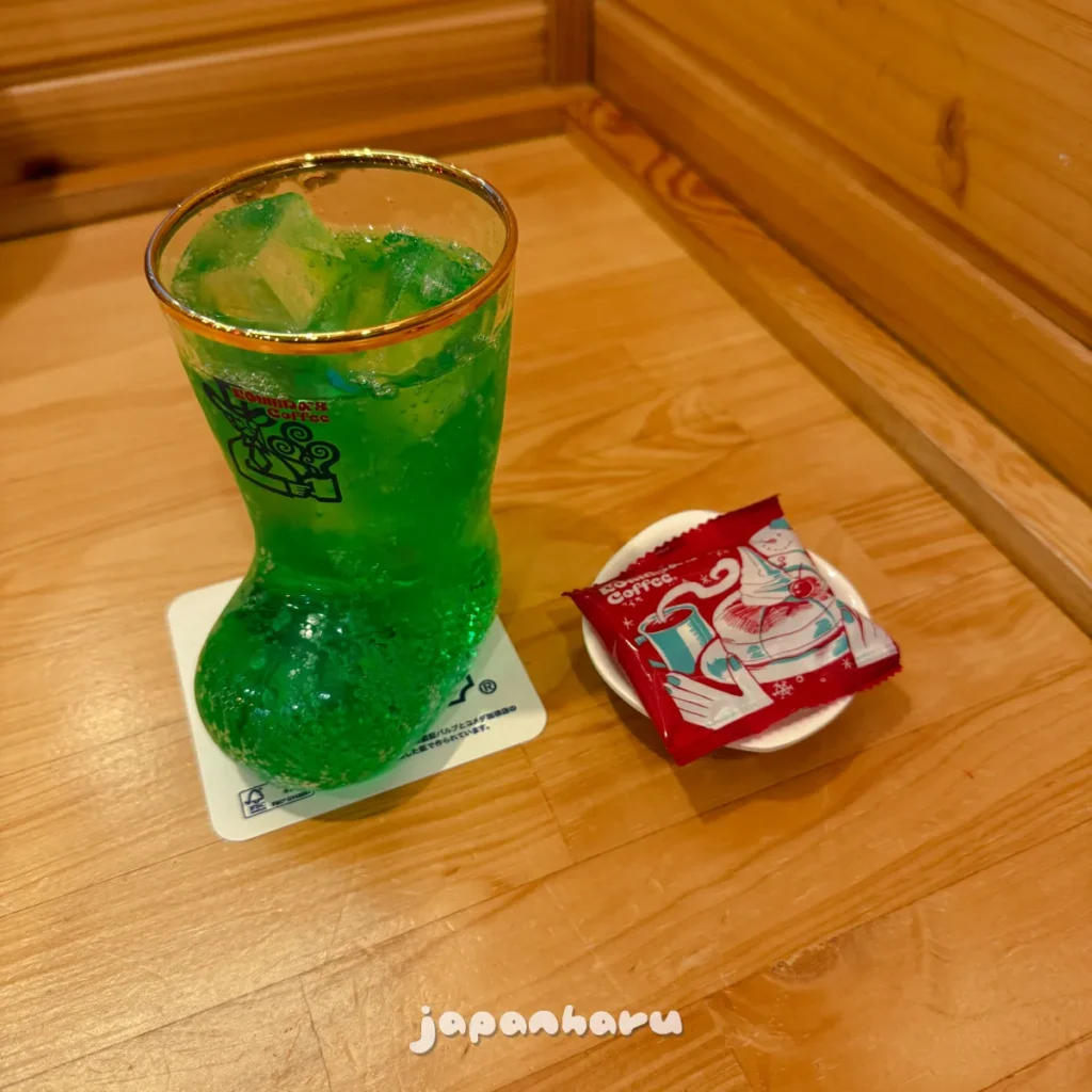 메론크림소다를 주문하면 저 위에 크림이 얹어져있는 형태인데, 저는 음료에 크림을 얹어먹는걸 별로 좋아하지 않아서 크림없이 그냥 메론소다를 주문했어요 ☺️