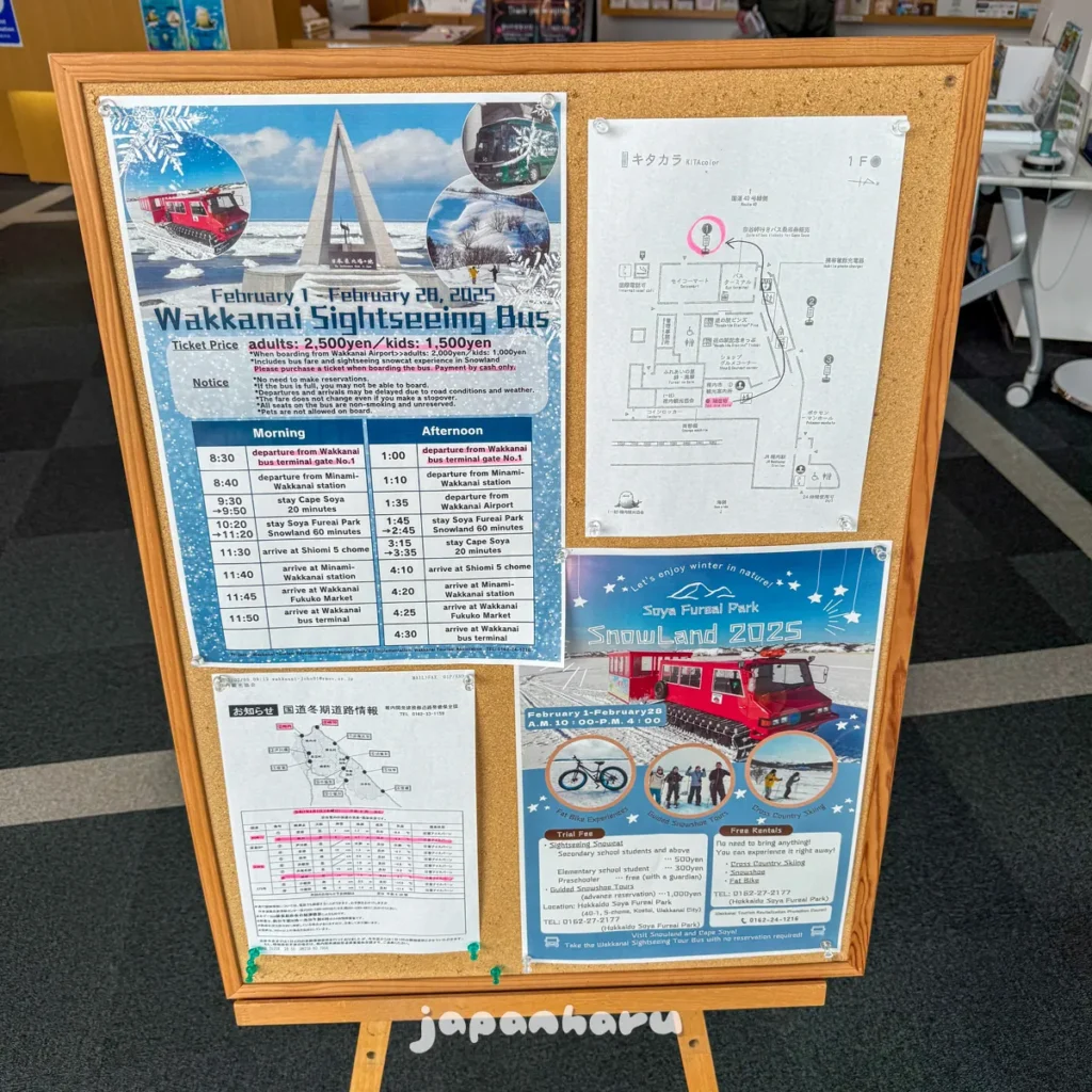왓카나이 관광버스 등의 겨울철 한정 관광상품도 이렇게 안내하고 있네요.