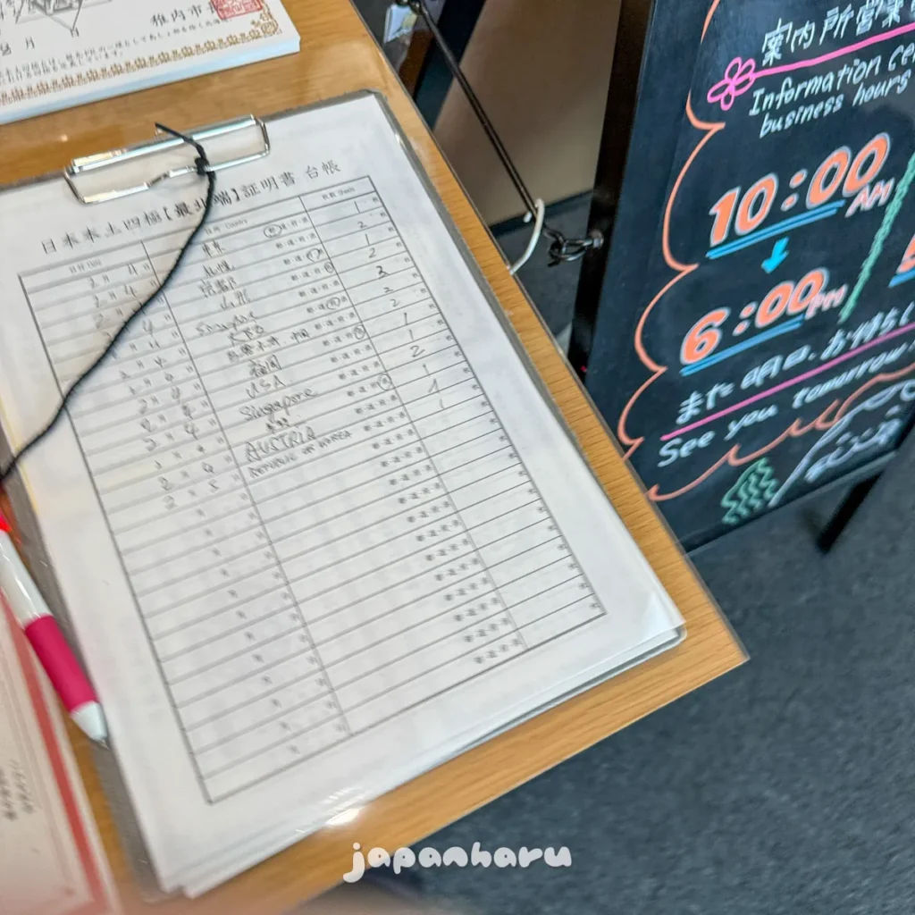 하지만, 그 뒤에 알아보니 왓카나이역에 있는 ‘왓카나이시 관광 안내소’에서도 발급이 가능했고, 이번에는 시청까지 가지 않고 왓카나이역에서 증명서를 받기로 했어요!