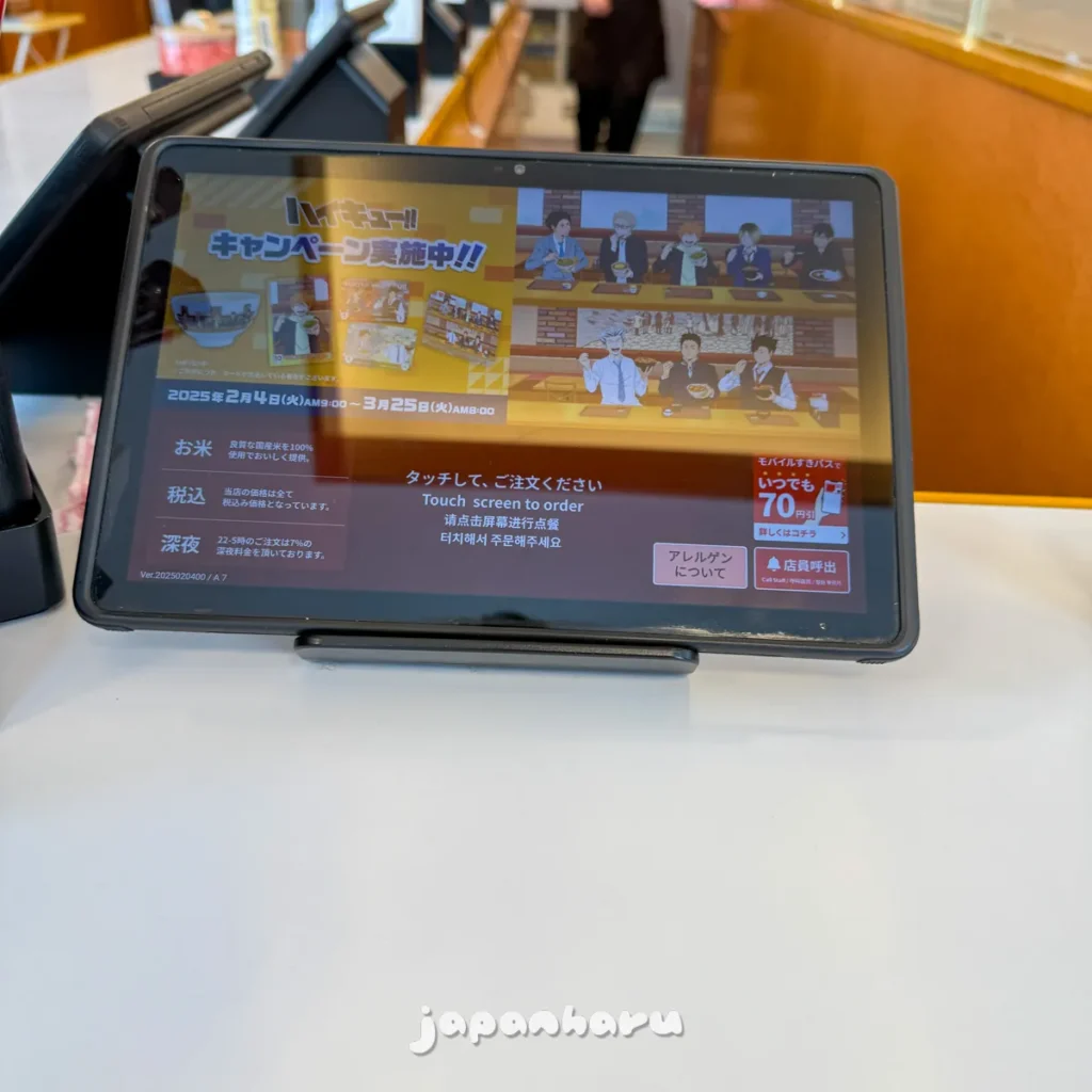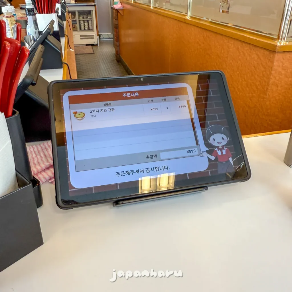 태블릿으로 주문이 가능하고, 한국어도 지원해서 일본어를 몰라도 주문하는데 불편함은 없어요.