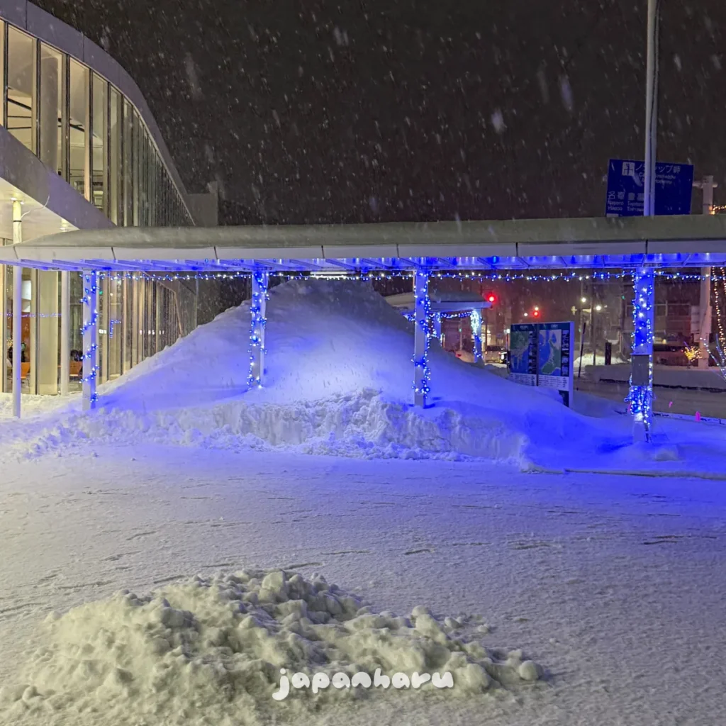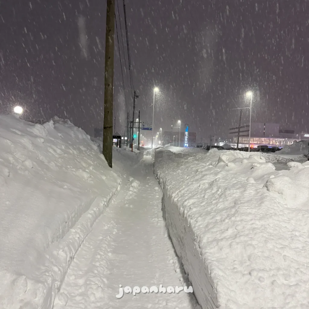 ‘삿포로도 이정도는 아니었는데…’라는 생각을 하며 양 옆의 높은 눈벽을 지나서 역으로 걸어가요.
