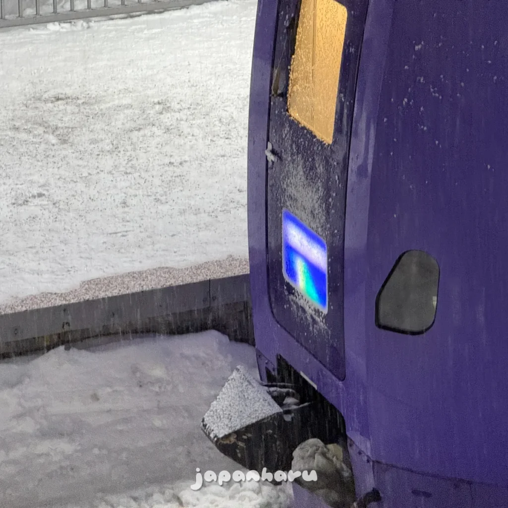 눈과 얼음 때문에 열차 전면에 있는 열차 마크는 보이지 않네요… 😅