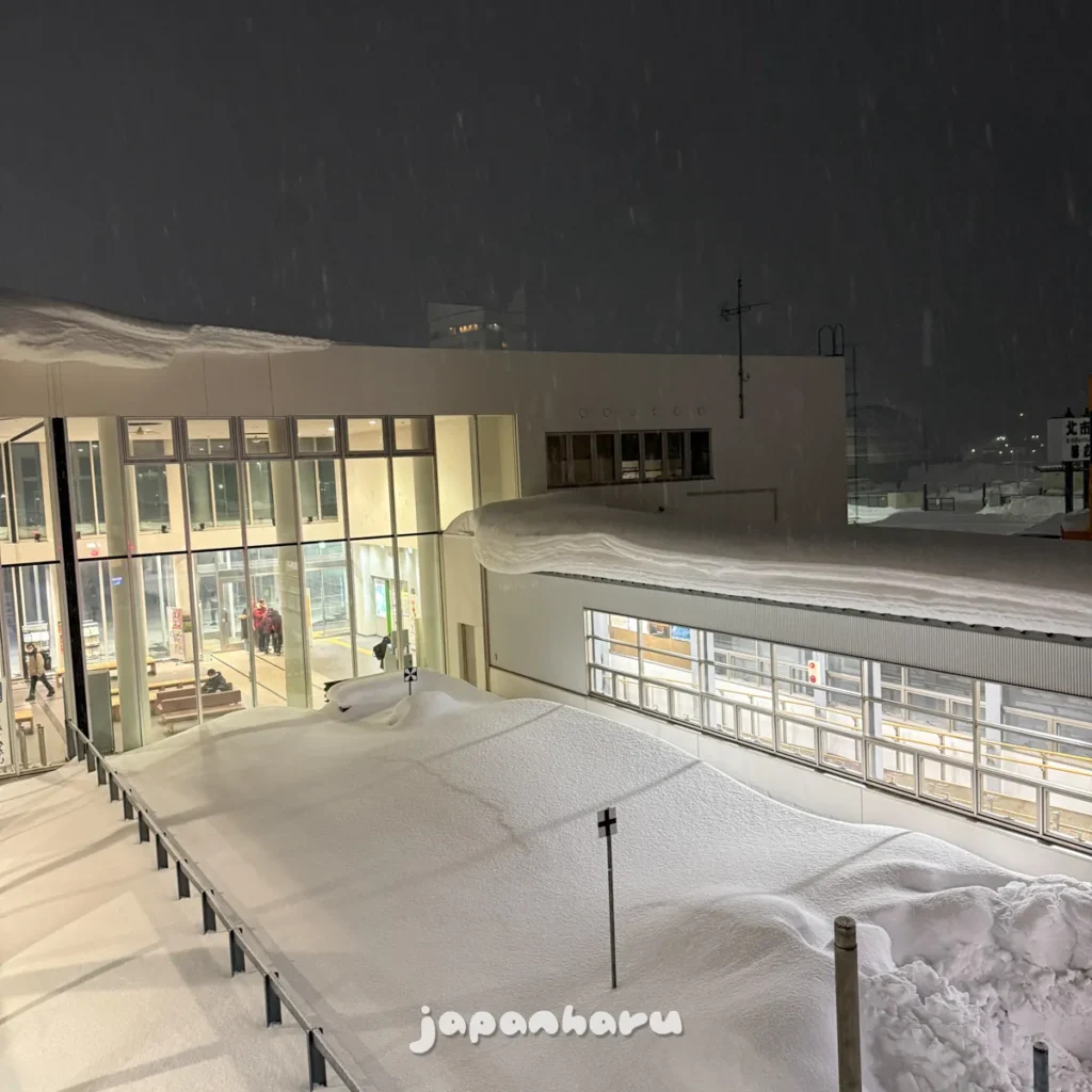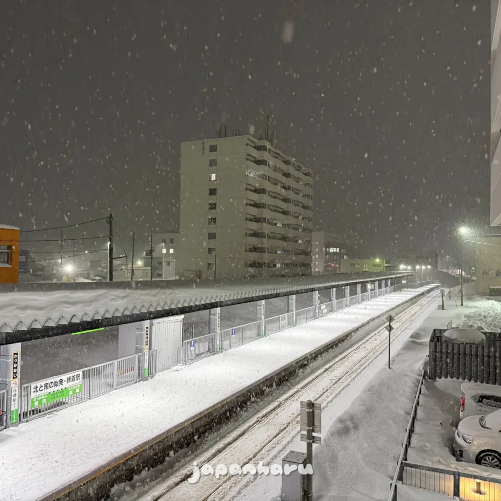 호텔에서 역까지는 걸어서 5분 정도면 가는 거리지만, 이렇게 눈이 쌓인데다 지금은 눈도 쏟아지고 있어서 생각보다도 멀게 느껴져요… 😅