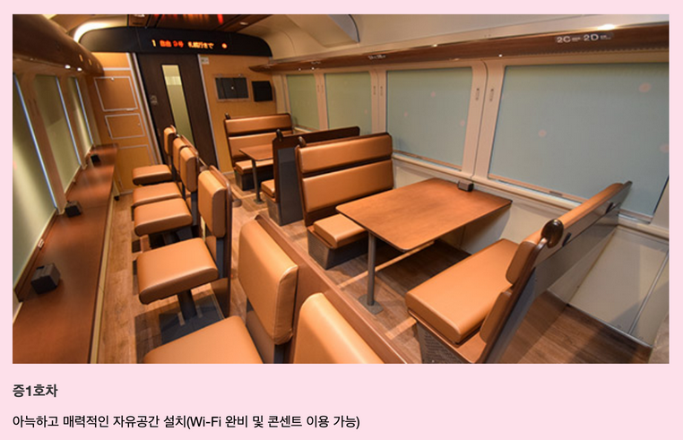 자유석 개념으로 창가를 바라보는 좌석과 테이블이 있는 좌석이 있는 느낌인데, 꼭 관광특급열차 느낌이네요 ☺️