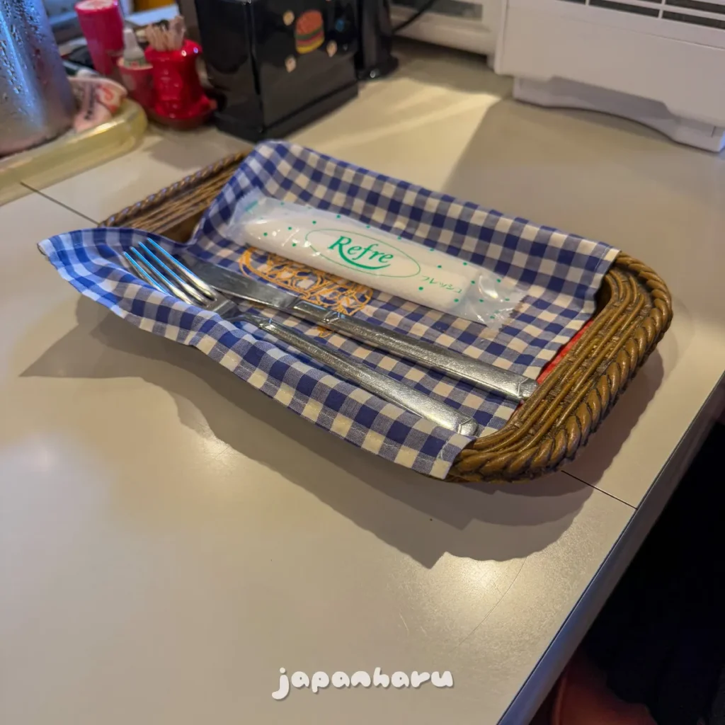 주문을 마치고, 물티슈와 포크, 나이프를 주셨어요.