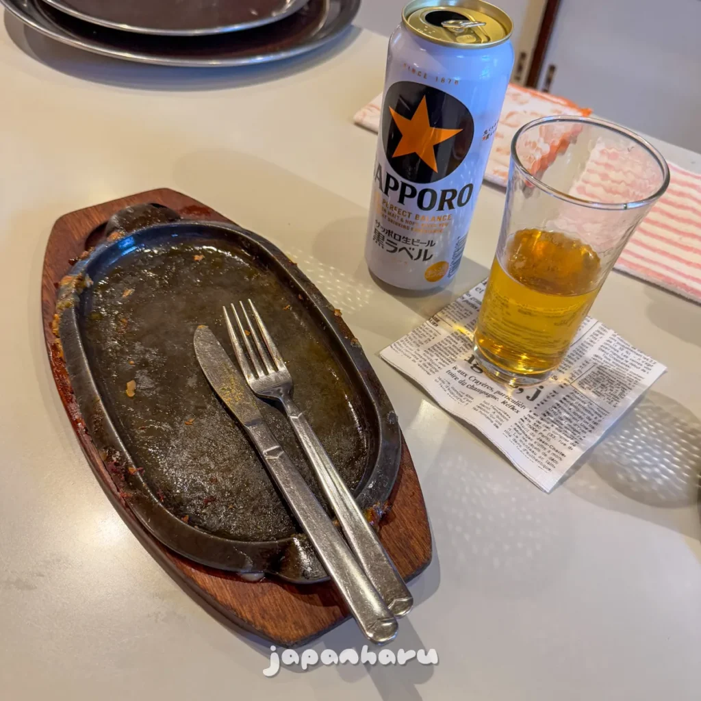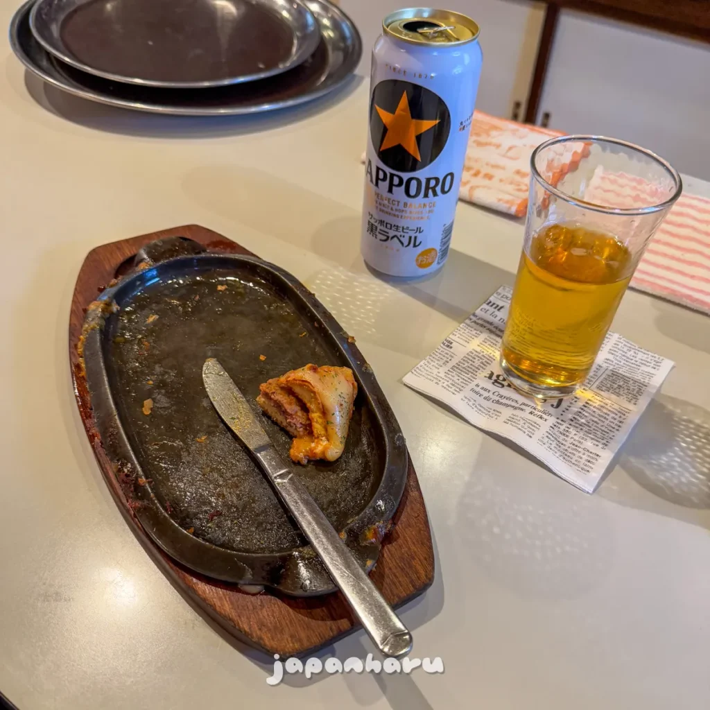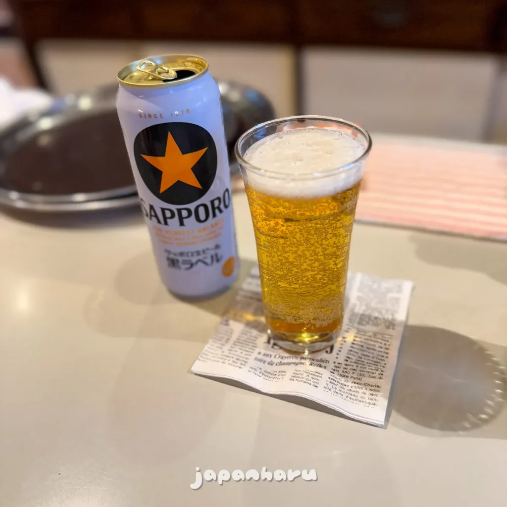 맥주는 삿포로 블랙라벨! 500ml짜리 캔맥주에요.