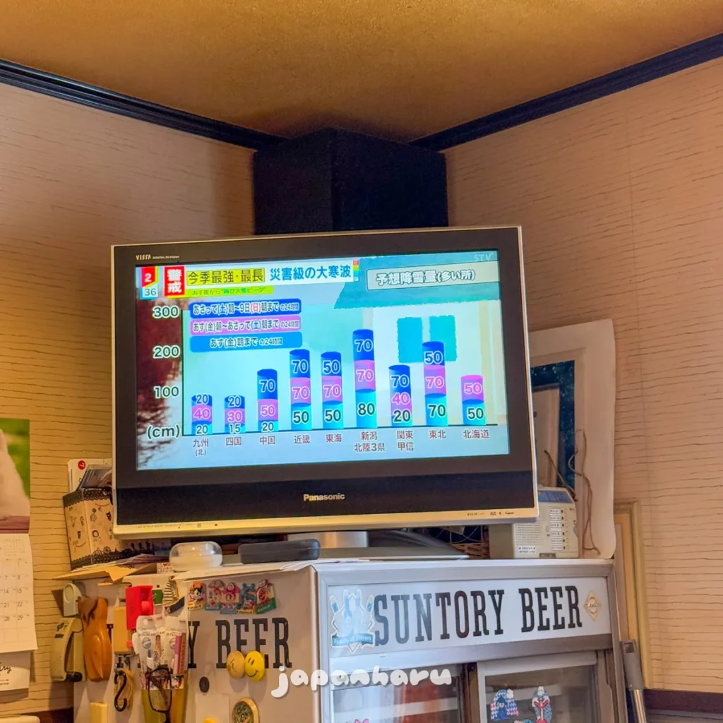 일본 전국에 눈이 어마하게 온다는 뉴스를 보면서 식사를 하고, 식사를 마칠 무렵에 창 밖을 보니 폭설이 내리는 듯한 모습이었어요.