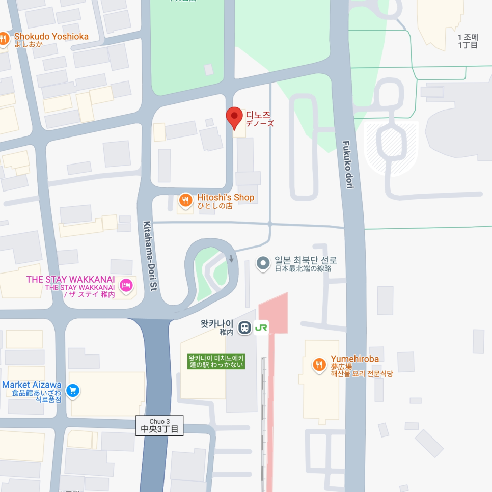 왓카나이역을 나와서 쭉 걸어서 2분 정도…?