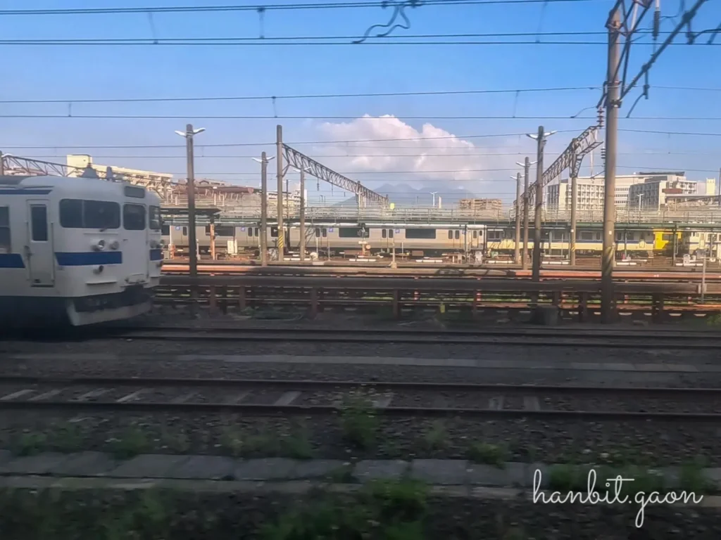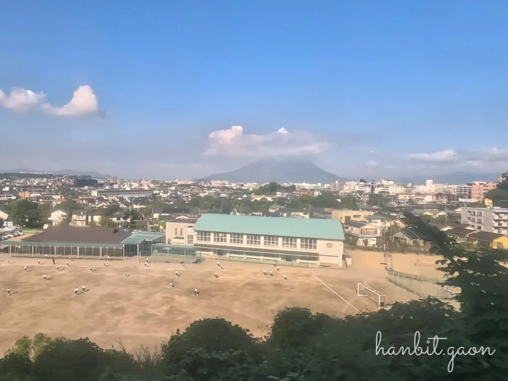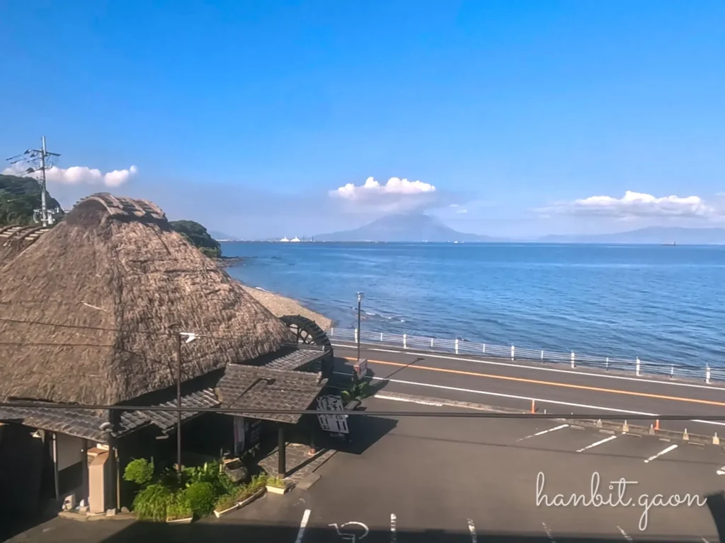 이부스키마쿠라자키선 구간 중 가고시마추오역에서 이부스키역까지 운행하는 관광특급열차인 이부스키노타마테바코(이부타마) 열차는 바다를 보며 달리는 열차로 유명한데, 중간에 저렇게 사쿠라지마도 보이는게 특징이에요 ㅎㅎ