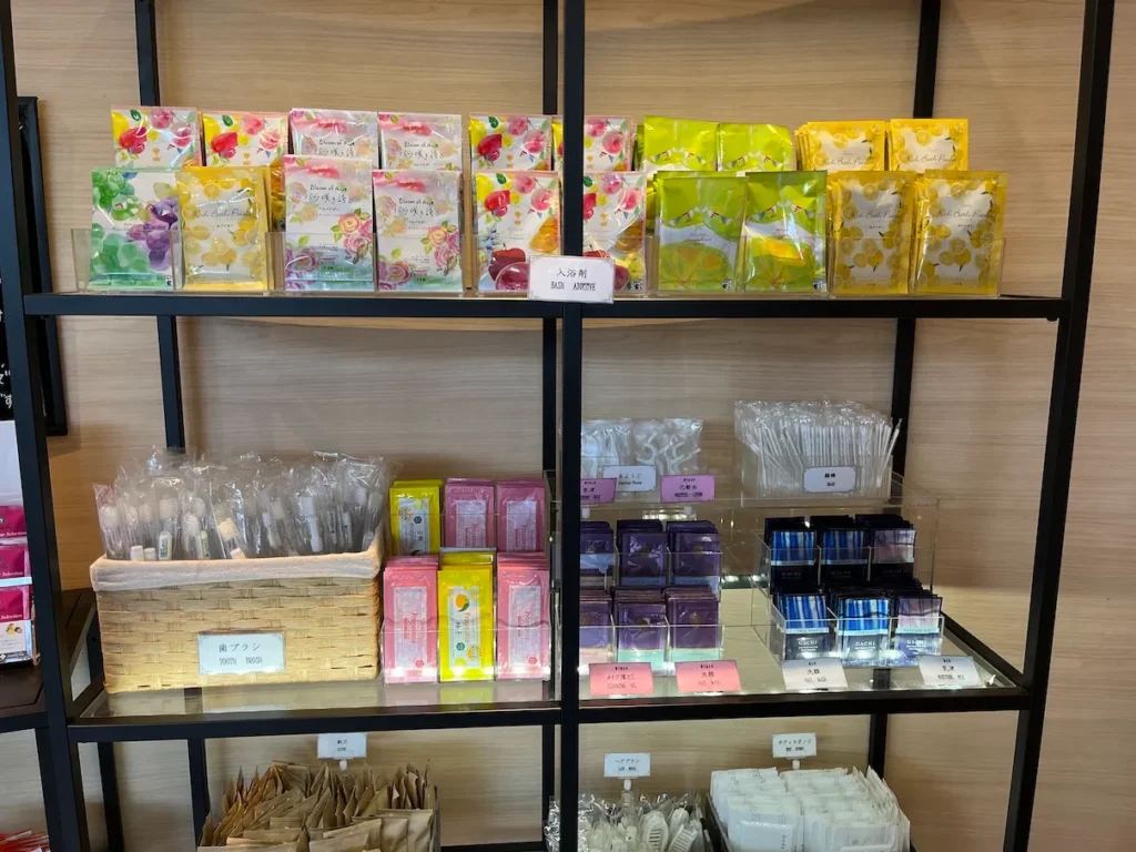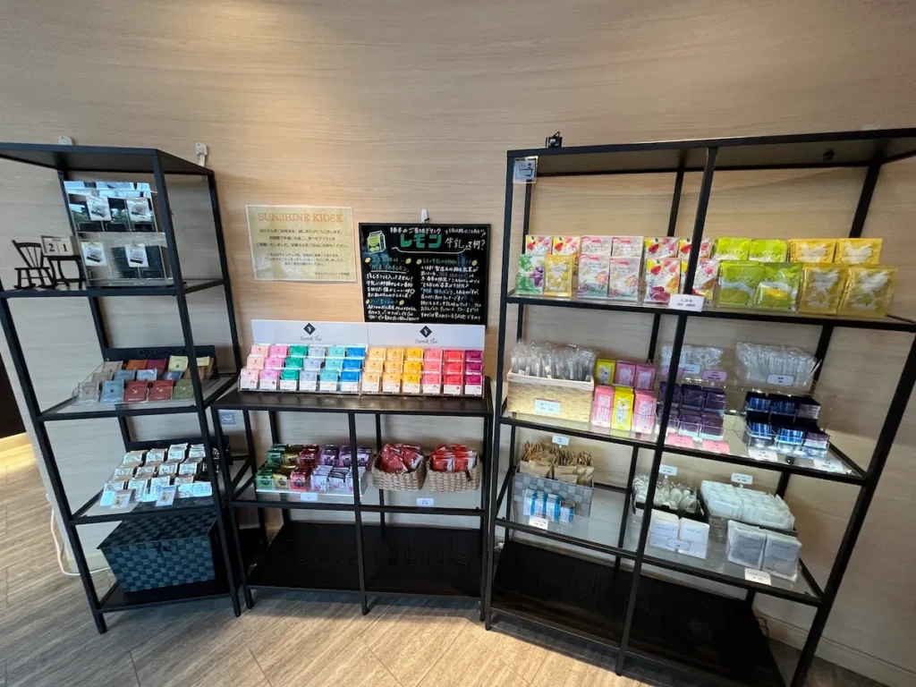 여기 셀프코너는 특이하게도 다양한 차, 입욕제, 가글 등이 있었어요.