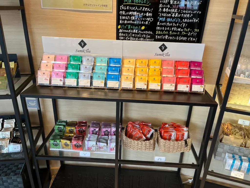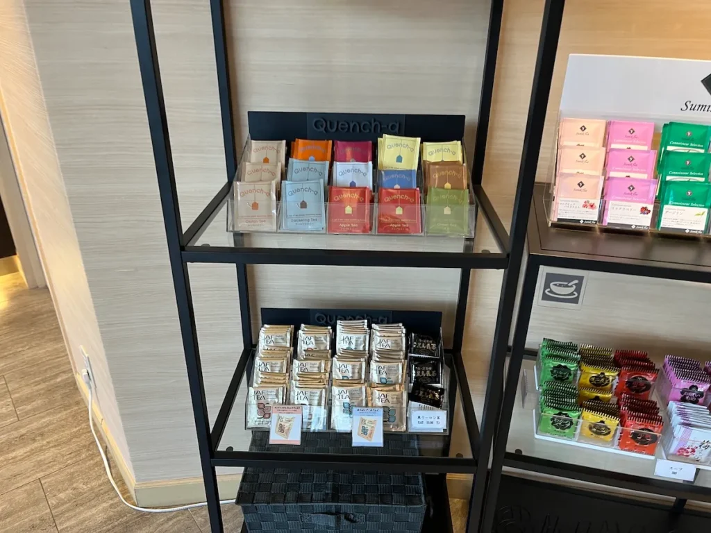 - 다양한 티백으로 구성된 어메니티(호텔 2층 프론트데스크 앞 어메니티 코너)