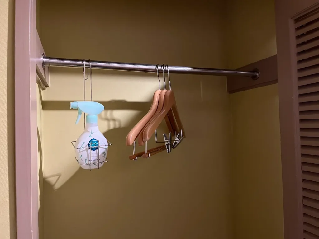 옷장 안에는 옷걸이와 탈취제가 있어요.