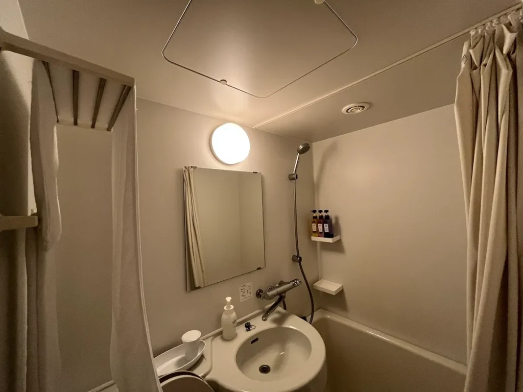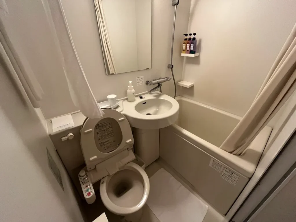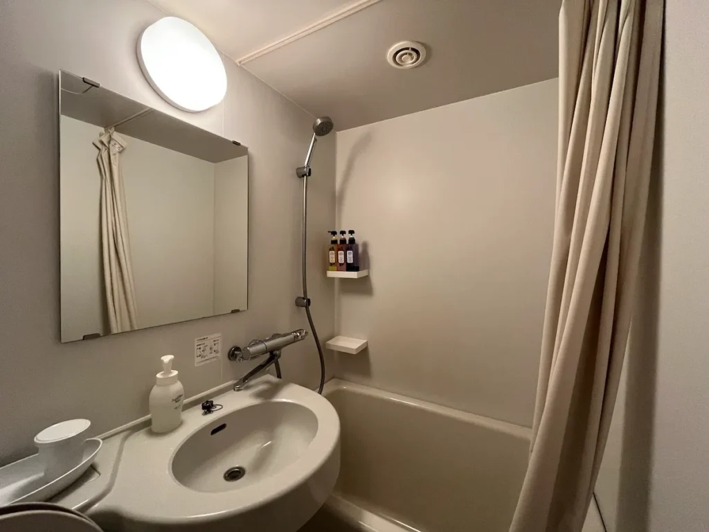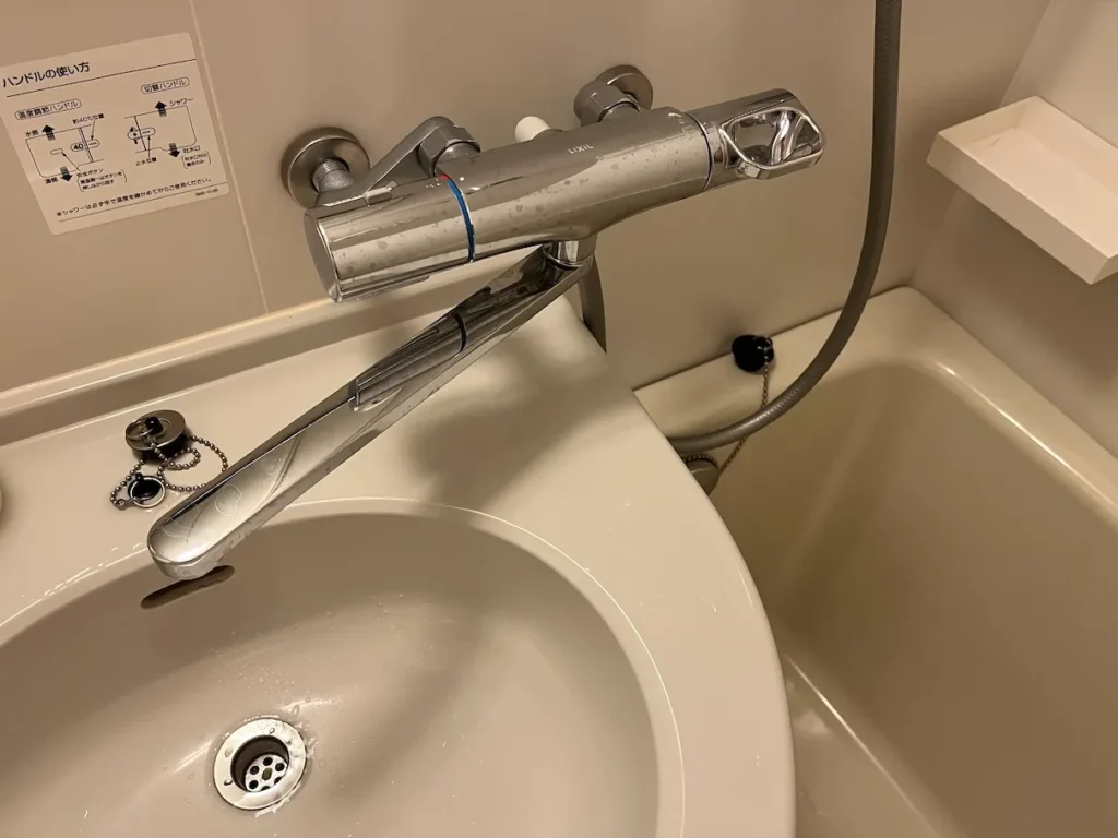 토요코인처럼 세면대쪽과 샤워기쪽이 하나로 되어있는데 오른쪽의 레버를 위로 올리냐 아래로 내리냐에 따라 물이 나오는 방향이 달라져요.
