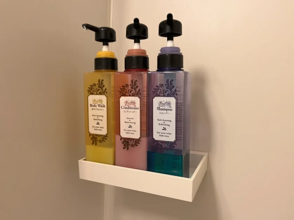 샴푸, 컨디셔너, 바디워시는 최근 많은 호텔과 마찬가지로 대용량 용기에 담겨 있는 형태에요.