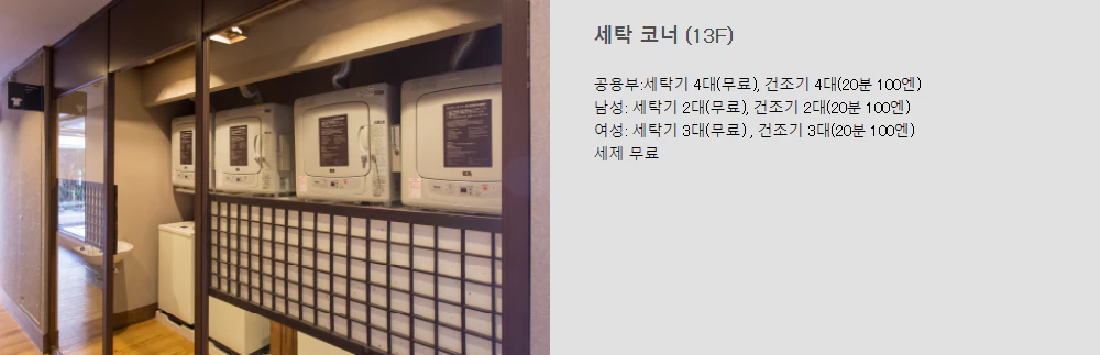 13층에는 대욕장, 셀프세탁기&건조기, 자판기가 있어요.
