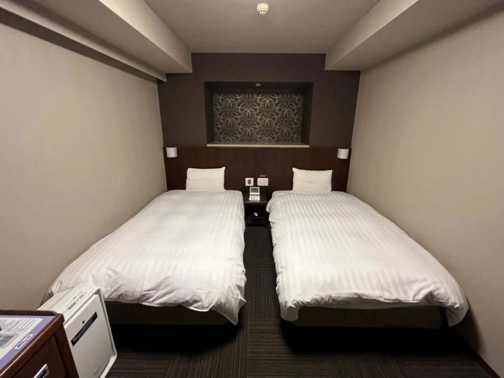 일반적인 객실처럼 트윈 침대로 구성되어 있고, 대신 바닥은 다다미(일본 전통 바닥재 느낌으로 생각하시면 좋아요) 느낌으로 되어있고 바닥에 앉을 수 있게 되어있어요. 사진에 따르면 창도 전통적인 느낌으로 되어있는 듯해요
