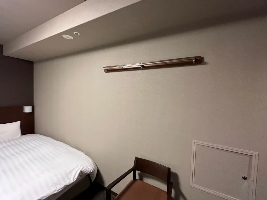 객실에는 옷을 걸 수 있게 행거가 있고 옷장에 있는 옷걸이를 가져다가 걸면 돼요.