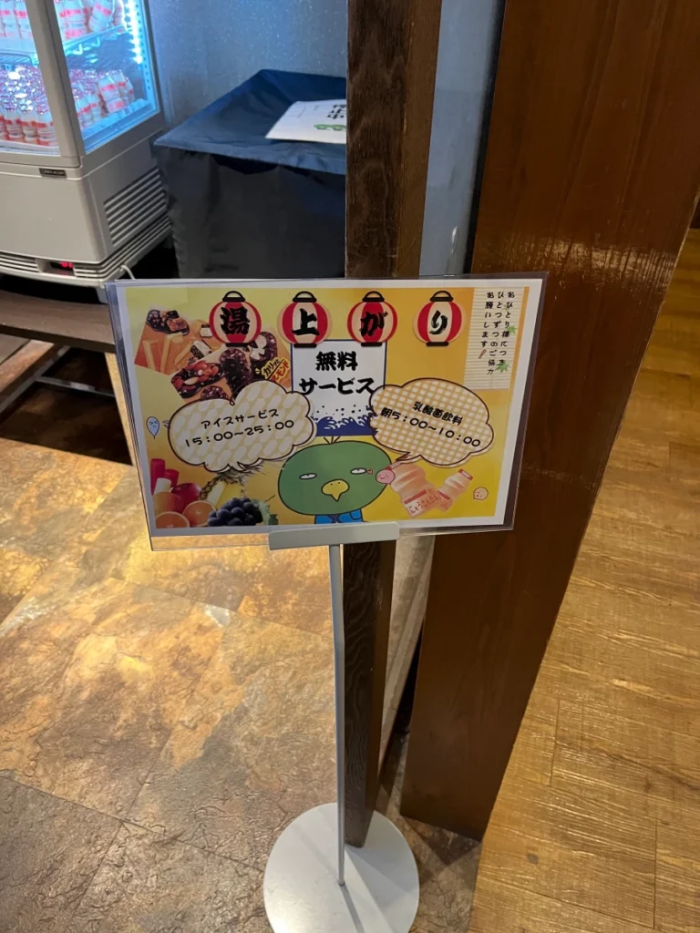 오후 3시부터 익일 오전 1시에는 아이스(하드라고 부르는 간단한 아이스크림이에요), 오전 5시부터 10시에는 위와 같이 요구르트가 있는데 무료로 먹을 수 있는 서비스 물품이에요. 다른 사람들을 위해 양심껏 1~2개만 먹도록 해요.