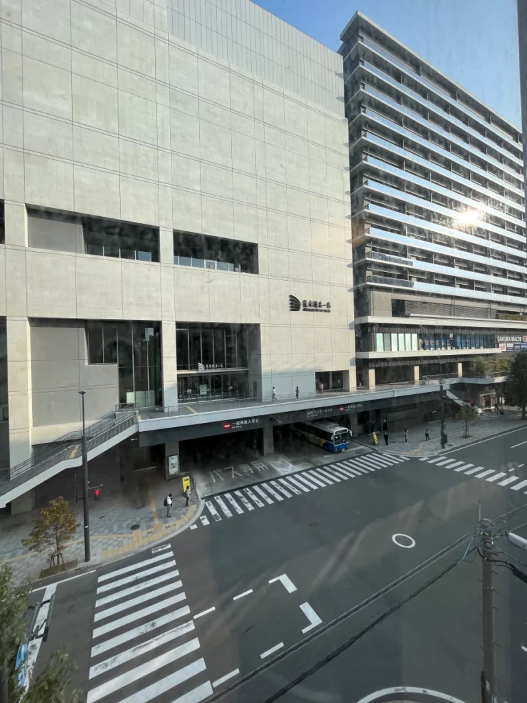 실 창으로 보이는 모습인데 바로 앞에 사쿠라마치 버스터미널이 있어요.