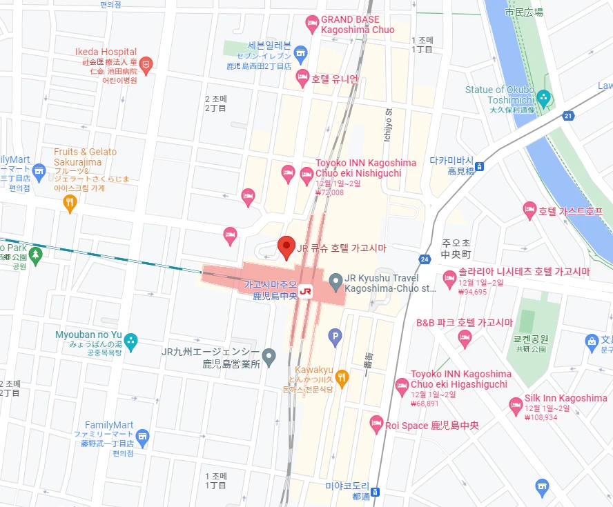 - 가고시마추오역에 위치한 호텔(역과 연결되어 있음)