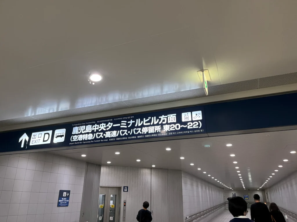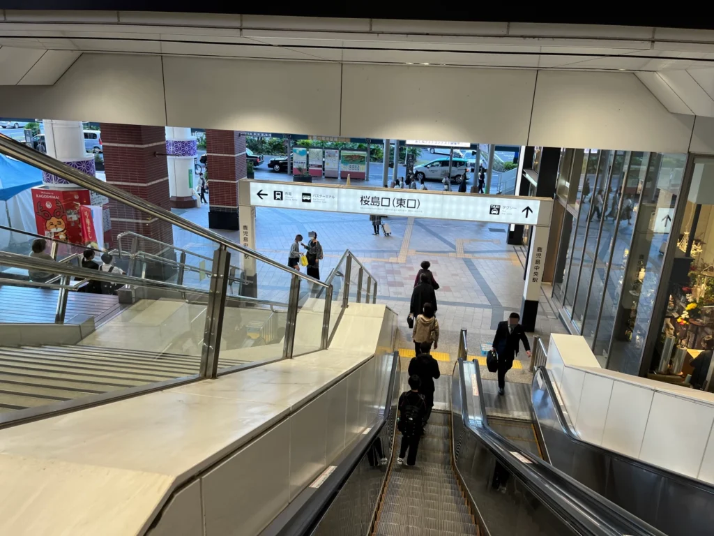 가고시마추오역에서 에스컬레이터를 타고 내려와서 나오면 지하로 내려가는 통로가 있어요.