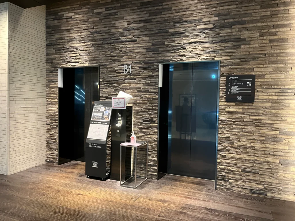 지하에서 바로 들어간 경우, 정면에 보이는 엘리베이터 말고 에스컬레이터 넘어서 보이는 엘리베이터를 타면 7층 호텔 로비까지 한 번에 갈 수 있어요.