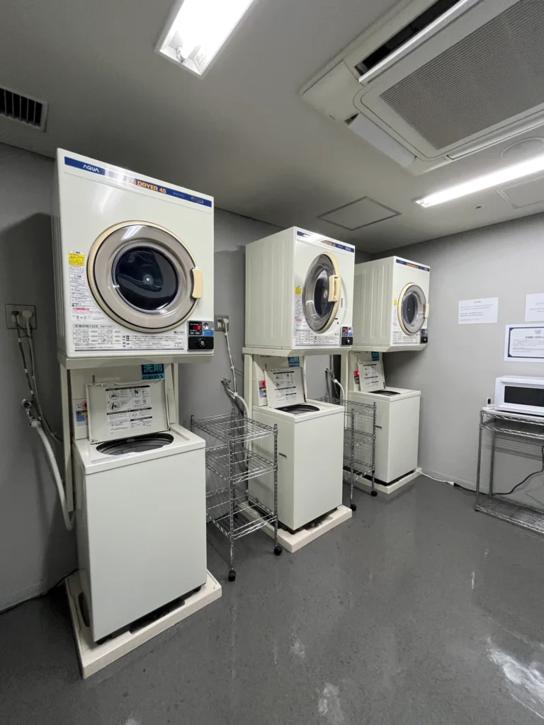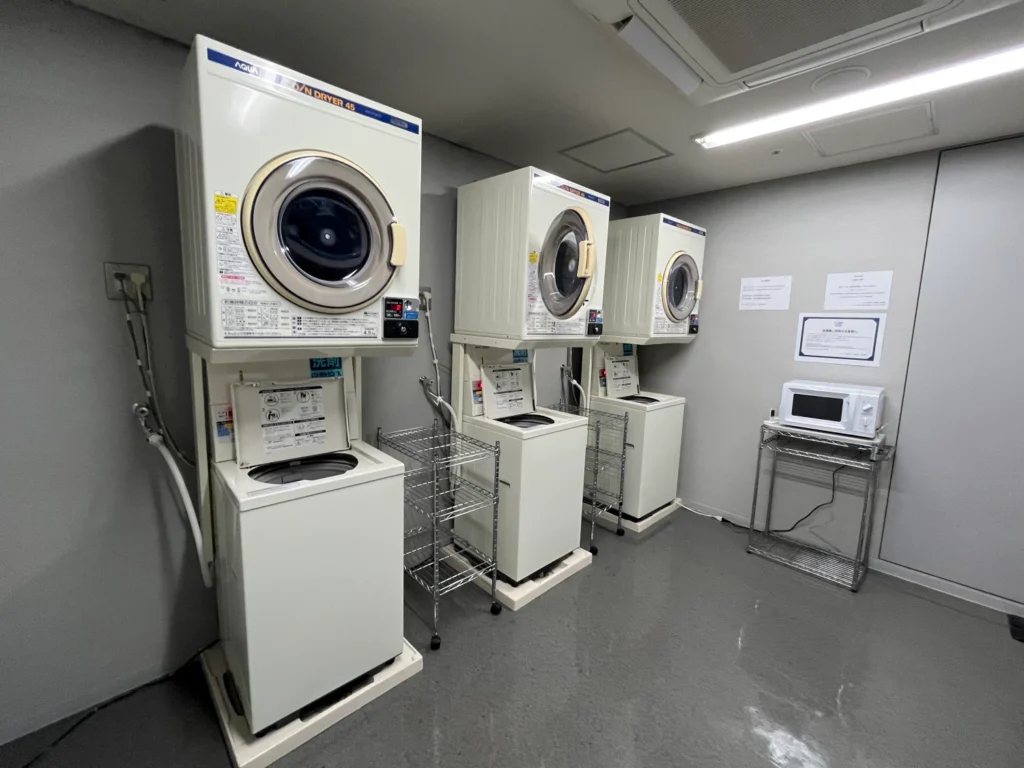 세탁기는 1회 200엔, 건조기는 30분에 100엔인데 30분으로는 부족하니 60분 사용을 생각해보면 200엔으로 보면 될 것 같아요.