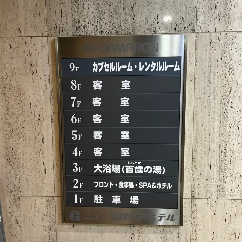 4층부터 8층은 객실, 3층은 대욕장, 2층은 프론트, 조식당, 캡슐룸이 있어요!