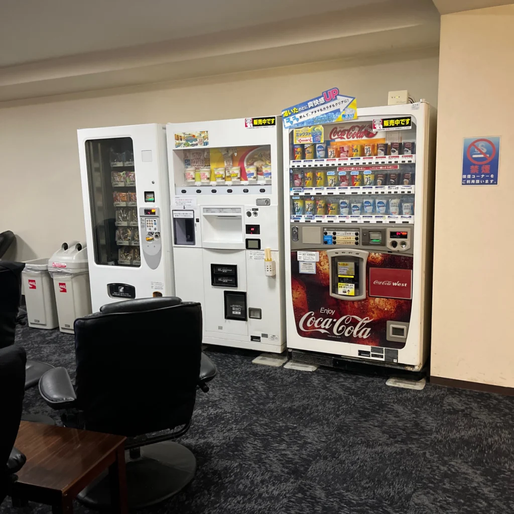 자판기는 간단한 간식, 컵라면, 음료, 맥주를 파는 자판기가 있어요(사진에는 맥주 자판기가 안보이네요)