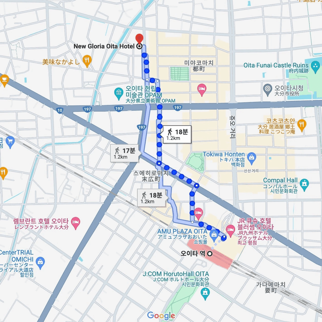 👣 호텔 위치: 오이타역에서 걸어서 약 15분