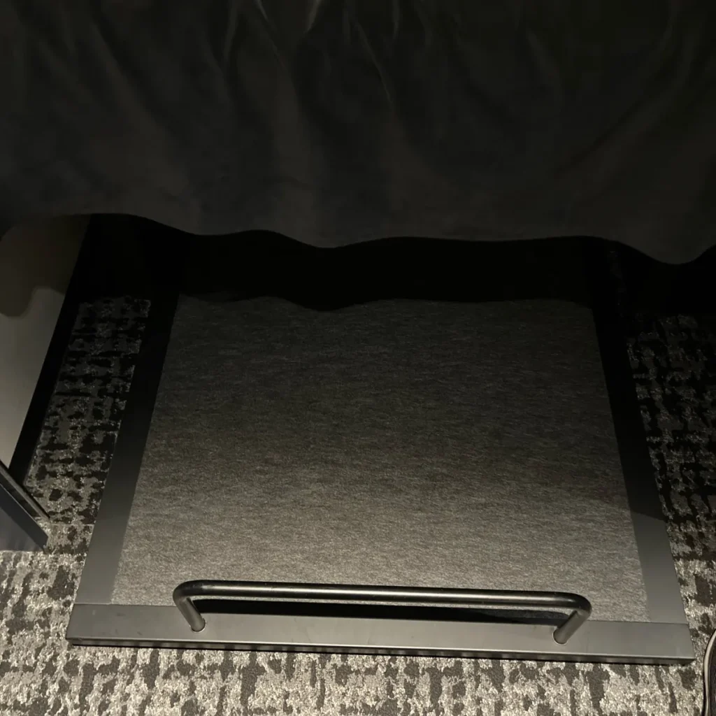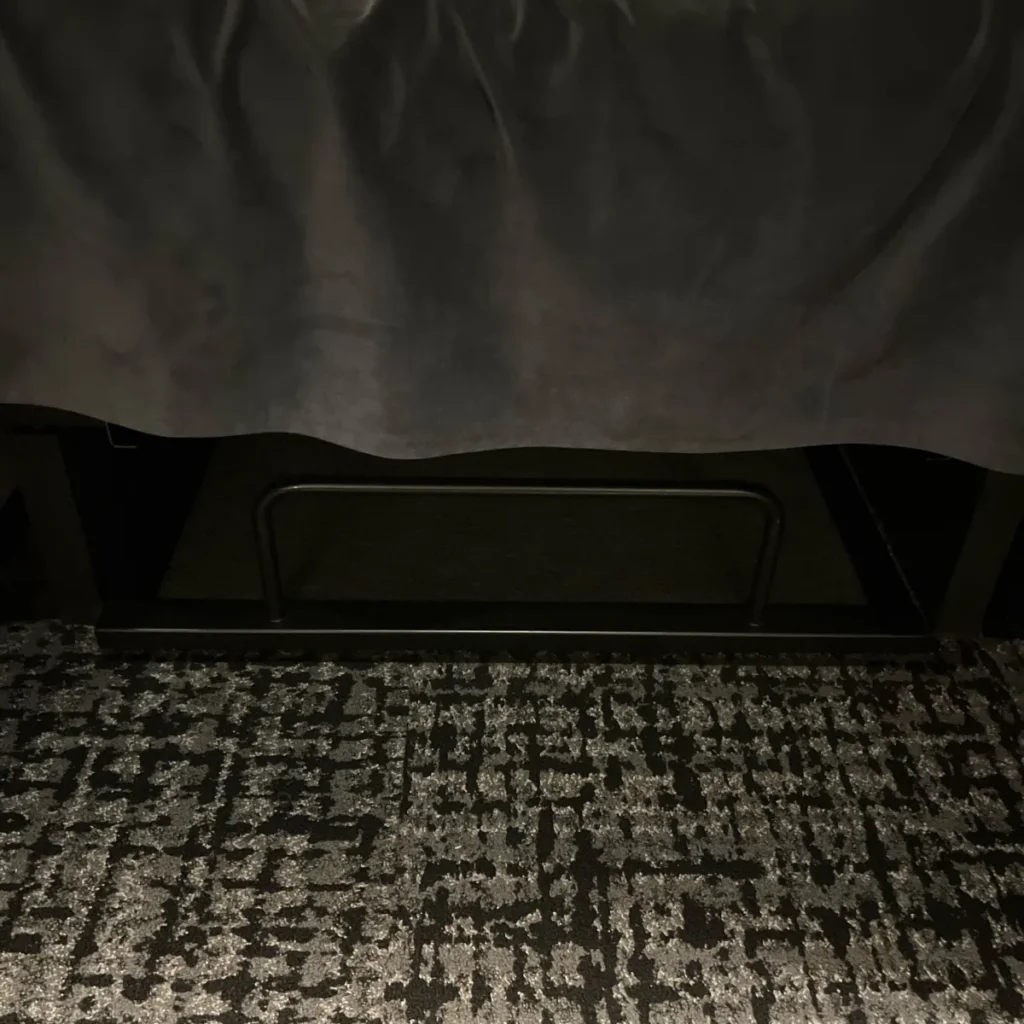 침대 아래에 보면 슬라이딩 형태로 된 보관공간이 있어요!