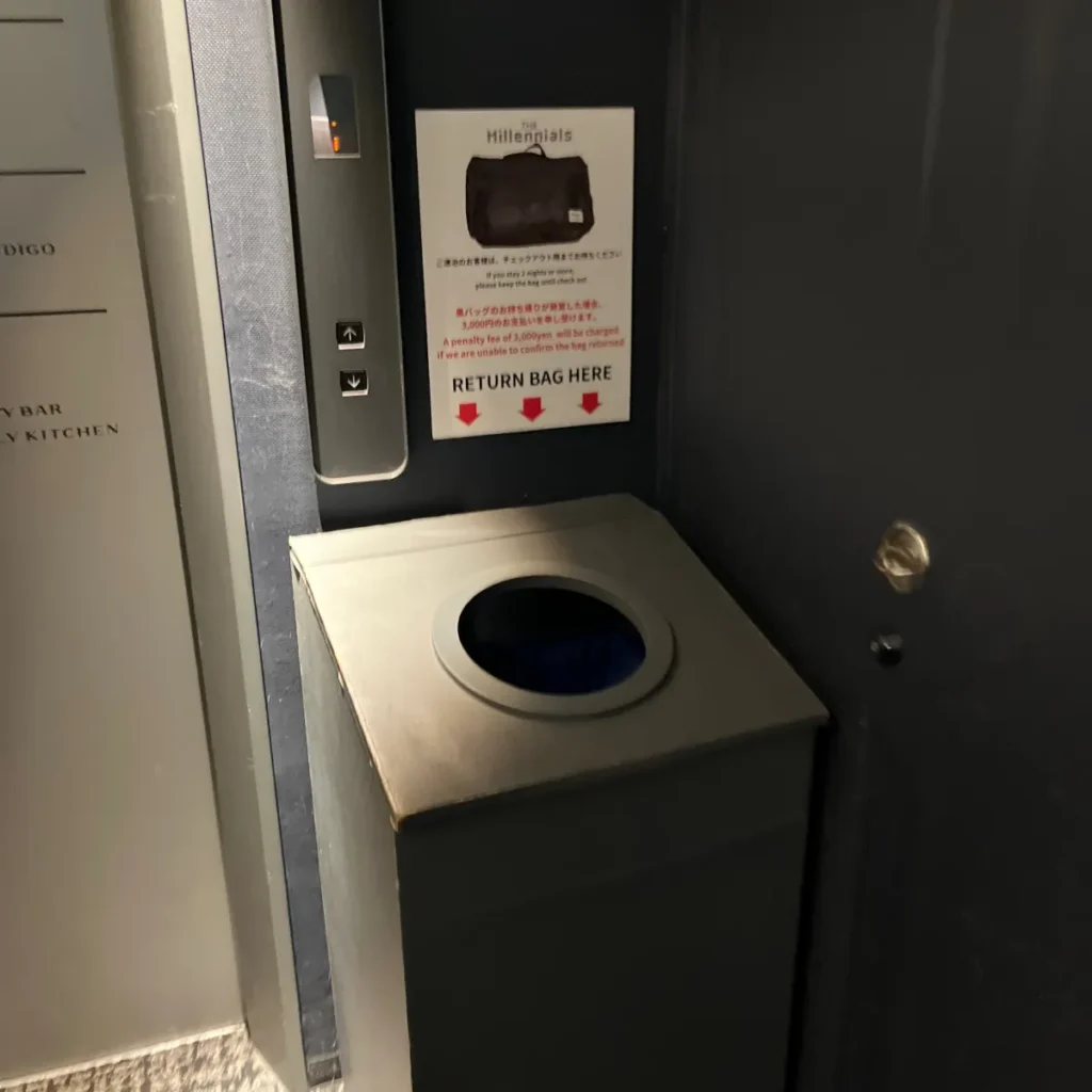 체크아웃 전, 목욕가방은 엘리베이터 앞에 반납!