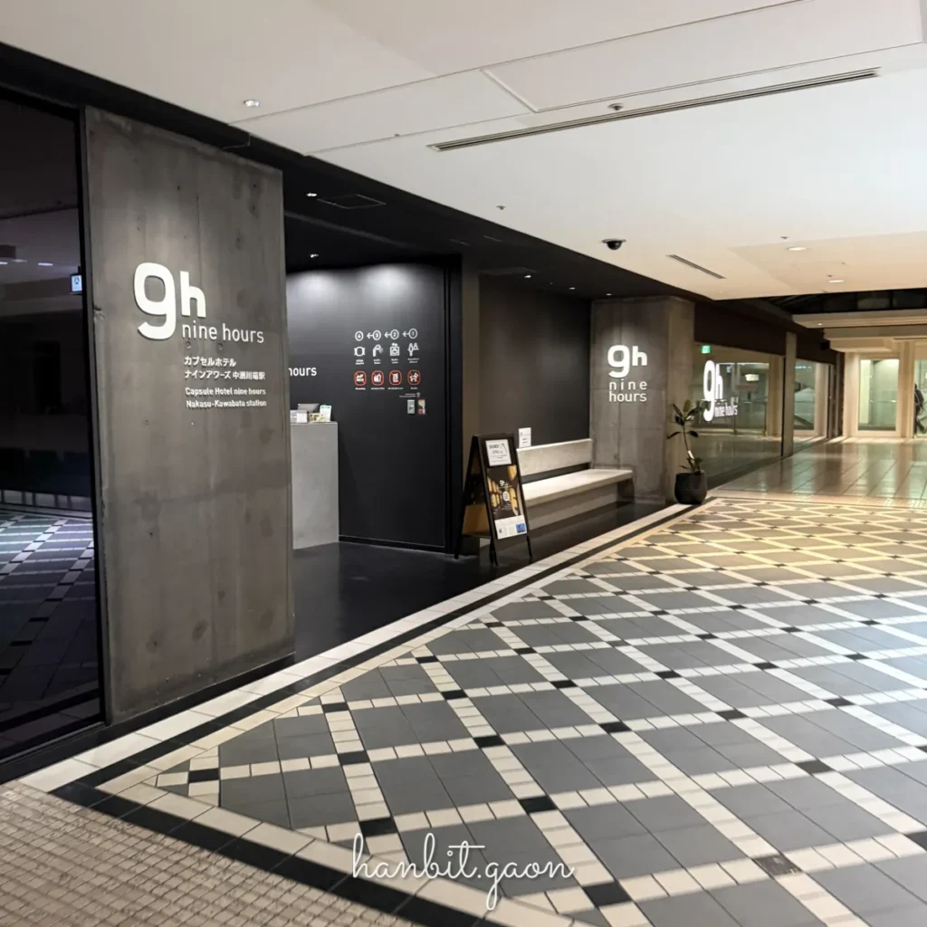 이번 10월 말에 이용했던 후쿠오카 캡슐호텔 2곳 중 첫 번째인 ‘나인아워스 나카스카와바타 스테이션’이에요!