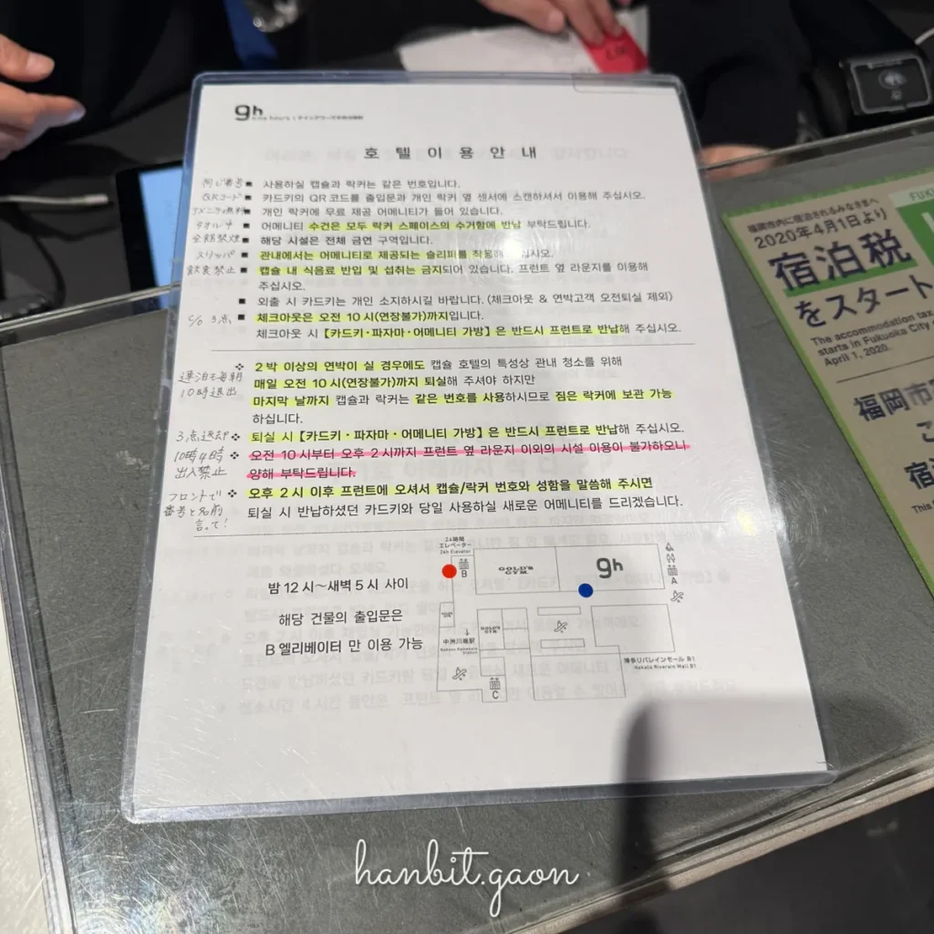 하카타스테이션 지점이 가진 아쉬운 점에 더해 라운지도 아쉬운 편이었지만, 청결이나 소음 부분은 괜찮았고 무엇보다 캡슐호텔을 이용하는 목적 중 큰 비중인 가격 면에서는 지금까지 묵었던 후쿠오카의 캡슐호텔들 중에선 제일 저렴한 편이어서 가성비로 본다면 꽤나 괜찮은 선택일 수도 있다고 생각해요.