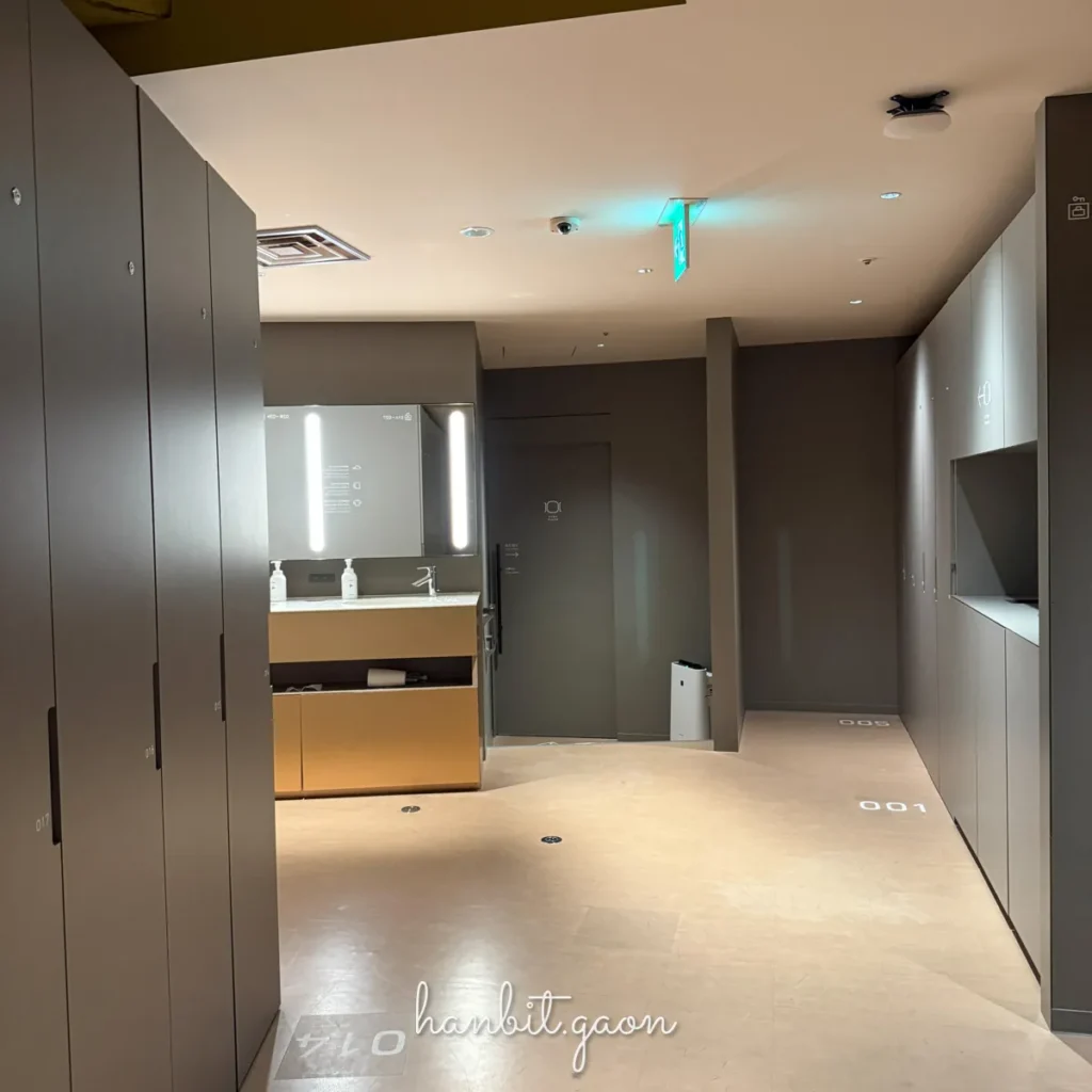 하카타스테이션 지점에 비해 편한 점은 같은 층에 있고, 외부와 로커 사이에 있는 세면대 옆에 있는 구조라 동선상 조금 더 편하다는 점이에요.