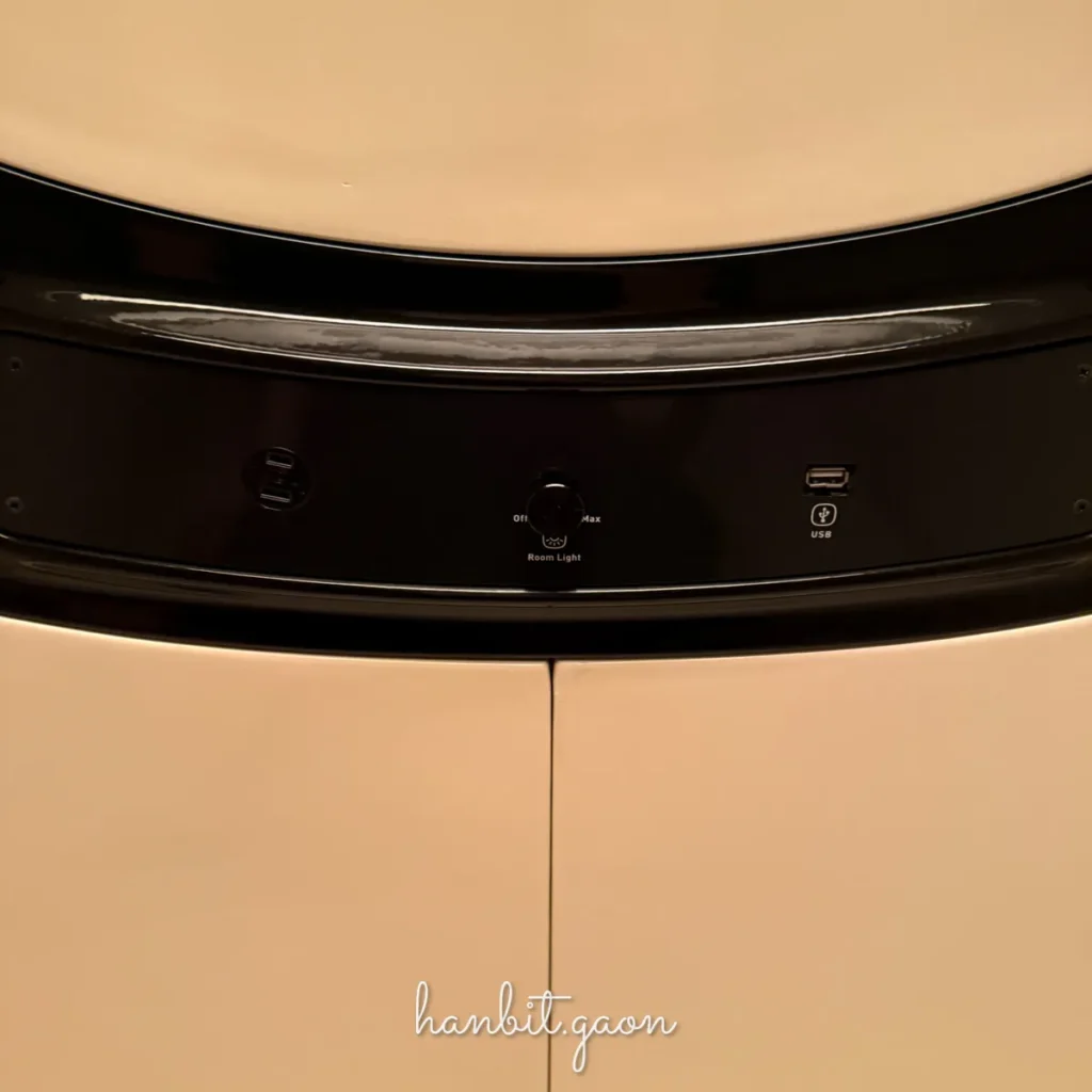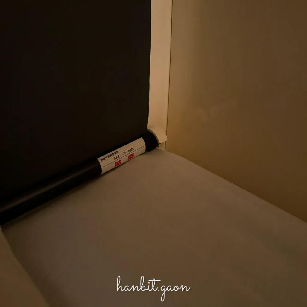 블라인드를 내려서 걸고 캡슐 내부 조명도 끄면 이런 느낌!