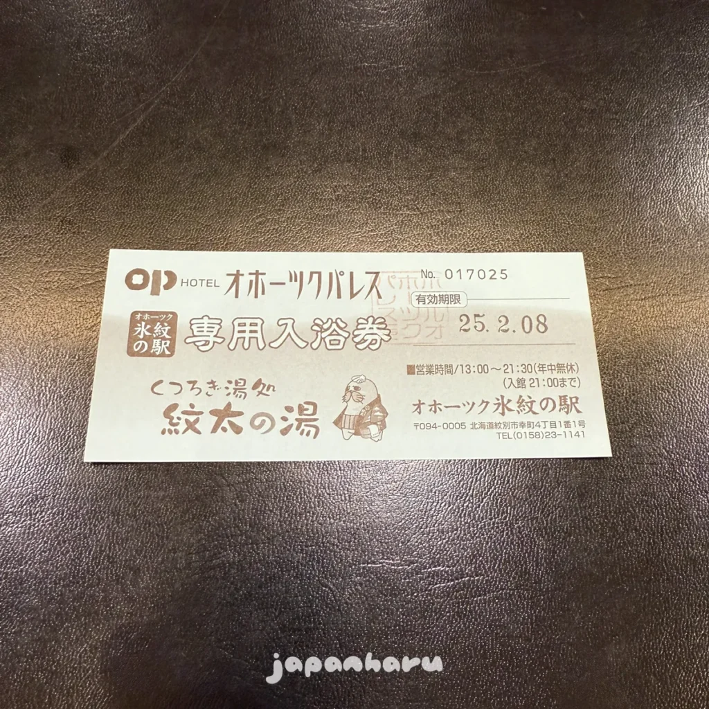 입욕권을 구입하니 이렇게 호텔 로고와 목욕탕 로고가 같이 있는 입욕권을 받았어요 ☺️