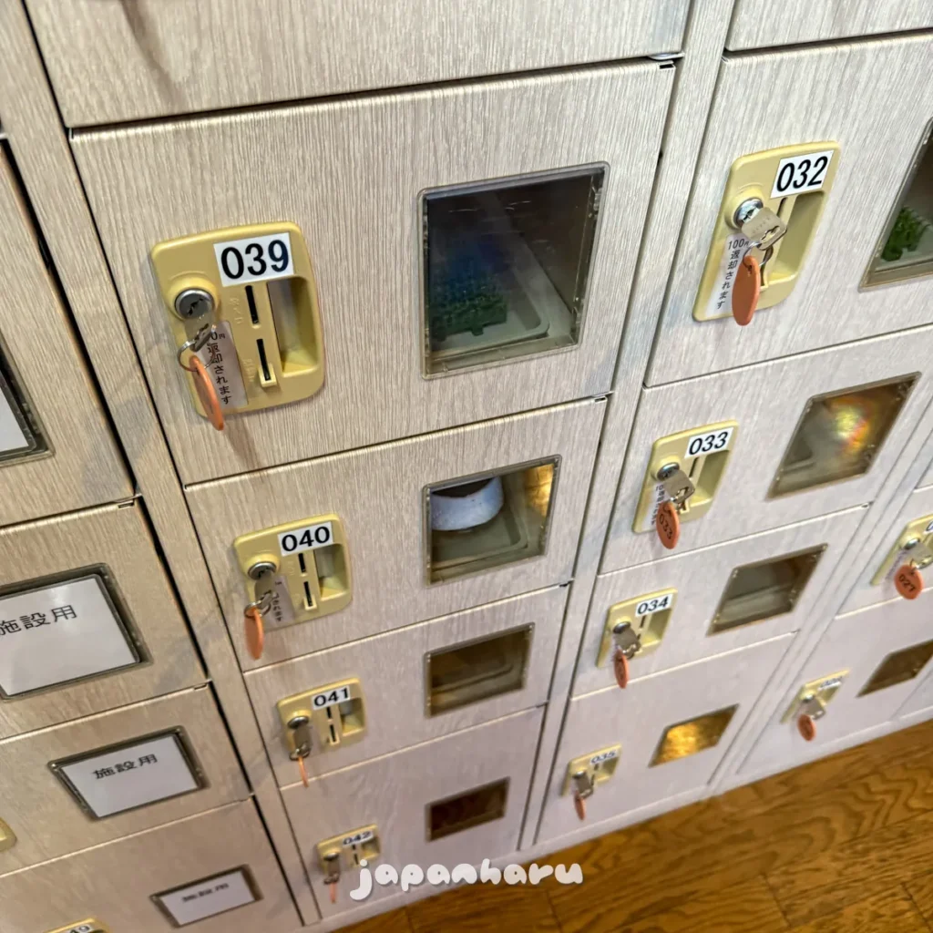 대신 키가 있는 로커는 신발장과 마찬가지로 100엔 동전을 넣고 이용하는 방식이었는데, 키를 꽂으면 동전은 다시 반환되는 형태였어요.