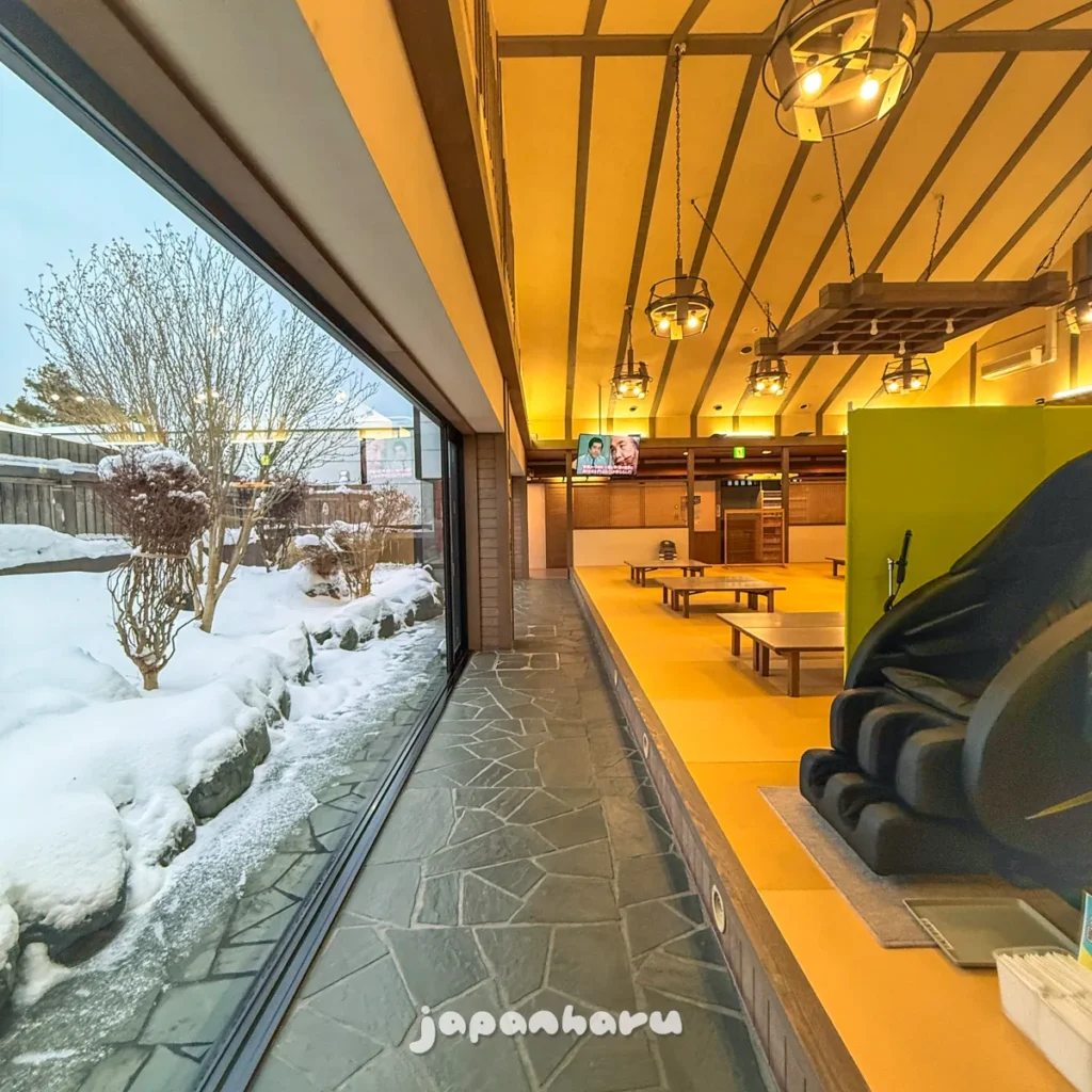 다만 노천탕은 문제가 있어서 공사중인지 탕에는 들어갈 수 없고 노천탕 옆에 있는 공간에 잠시 나갔다 올 수 있는 정도였지만 이 날은 영하권이었어서 나가기엔 조금 힘들었어요… 😅