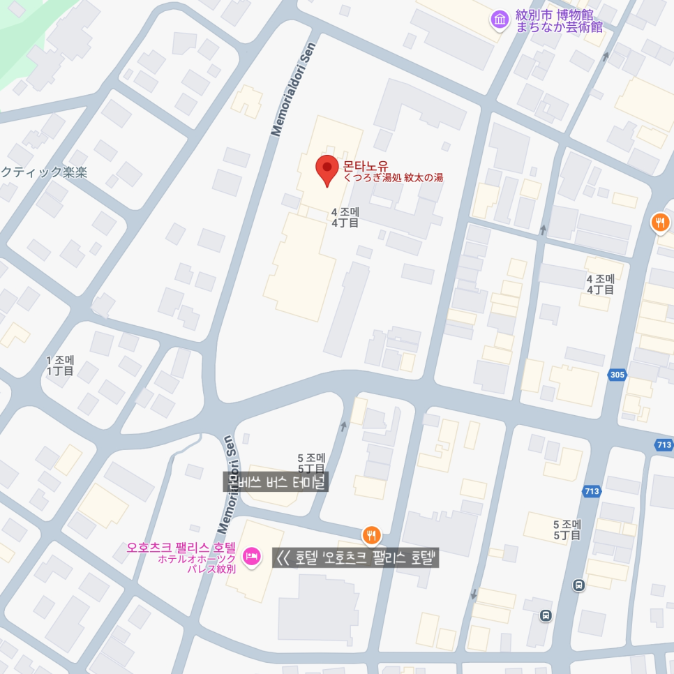 목욕탕인 ‘몬타노유’는 버스 터미널에서 걸어서 4~5분 정도 거리에요.