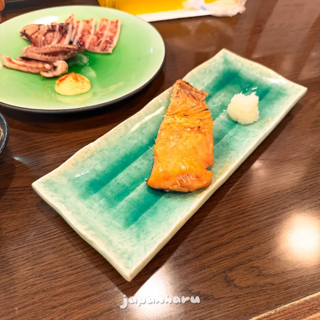 오늘의 생선으로는 ‘홋케’와 ‘소금연어’였는데, 홋케는 이미 며칠 전에 왓카나이에서 먹었으니 이번에는 연어를 먹어보기로 했어요.