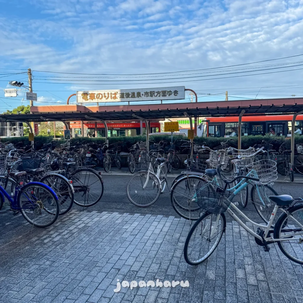 여기는 마쓰야마역 앞의 JR마쓰야마에키마에 정류장인데, 노면전차인 마쓰야마 시내선이 정차하는 정류장이에요.
