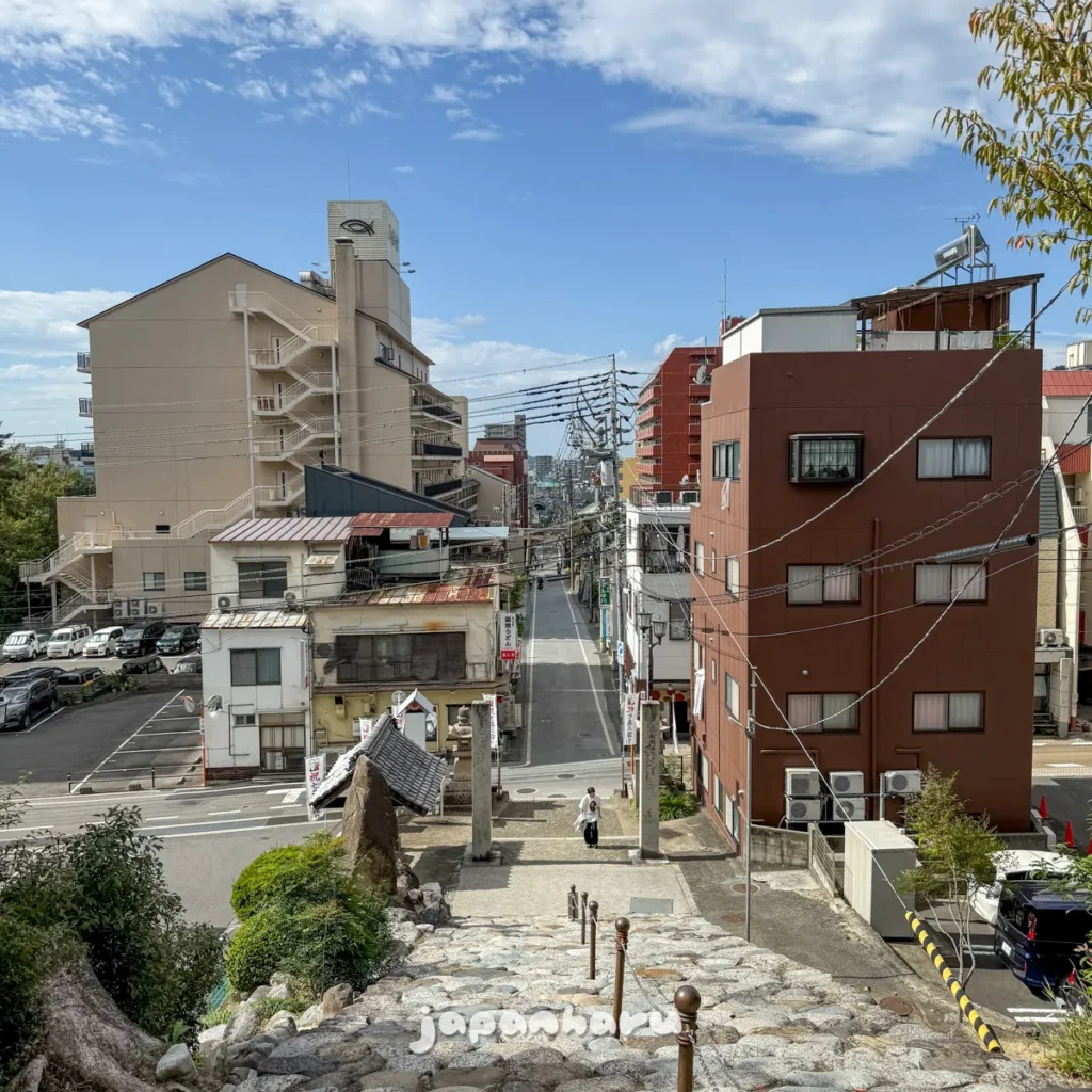 가파른 계단 위에 있는 신사인데, 계단 위에서 아래를 내려다보면 쭉 뻗은 길이 보이는게 멋진 느낌이라 한 번 가보고 싶었어요.