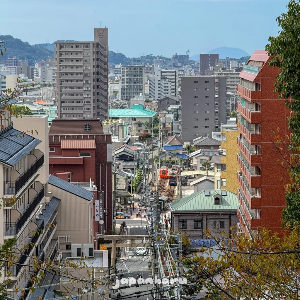 노면전차를 타고 동쪽의 종점까지 오면 도고온센역이에요.
