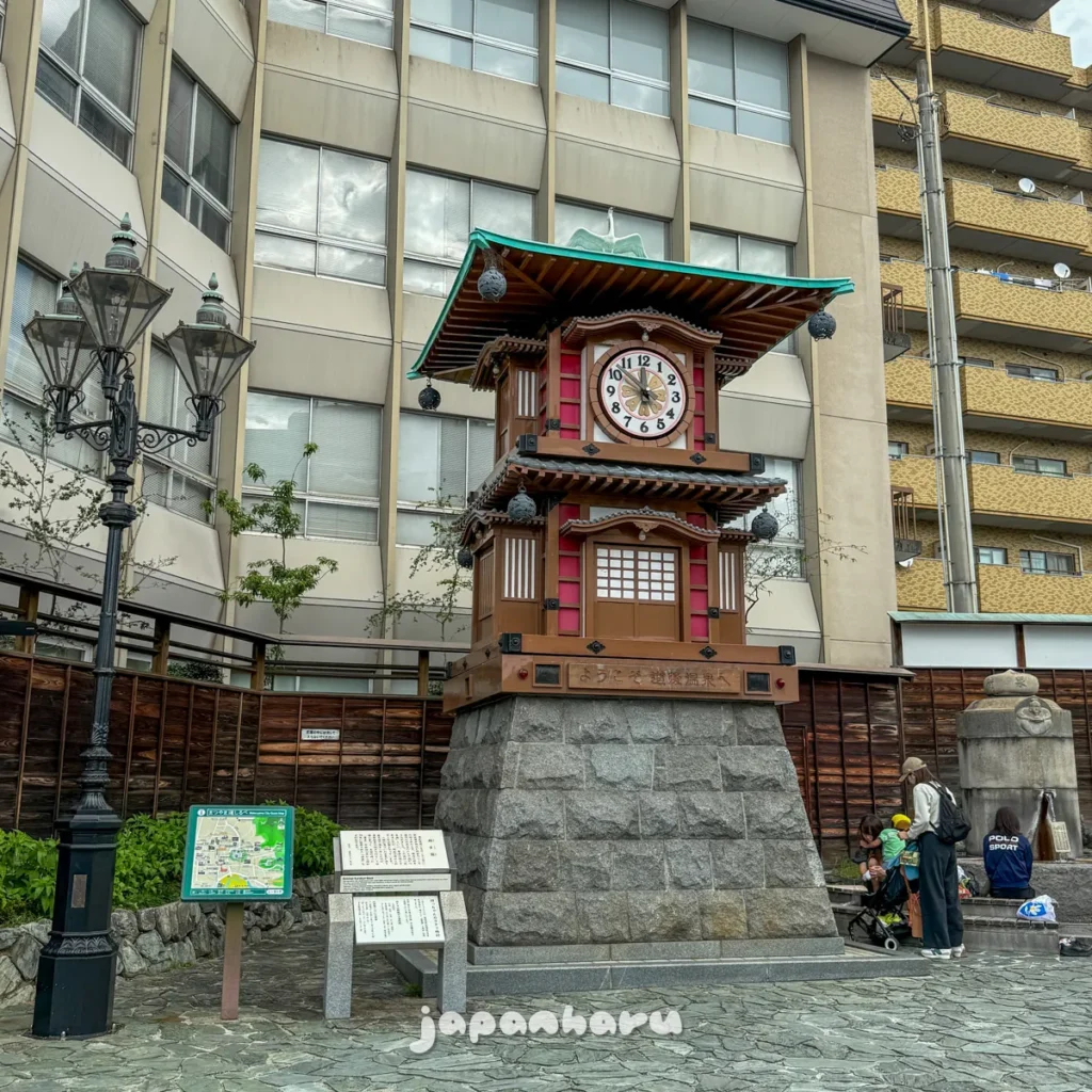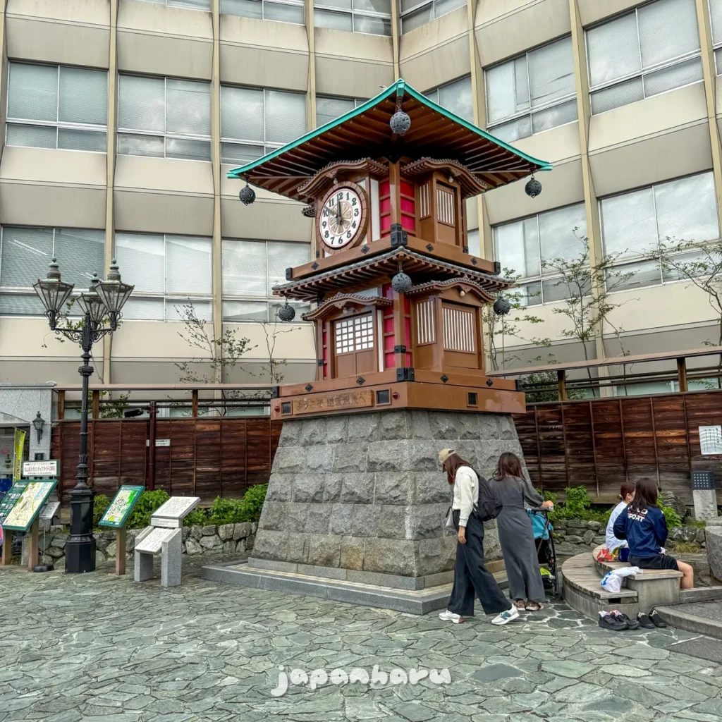 도고온천 본관 건설 100주년 기념 사업의 일환으로 1994년에 만들어진 이 시계는 오전 8시부터 오후 10시까지 매 정각마다 멜로디와 함께 시계에서 작은 캐릭터들이 나온다고 해요.